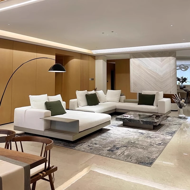 イタリアンミニマリスト・コナリー生地ソファー - モダンでシンプルなデザイン、広々としたリビングや別荘に最適。大小様々な部屋にフィットする本革ソファで、快適さとスタイルを両立!