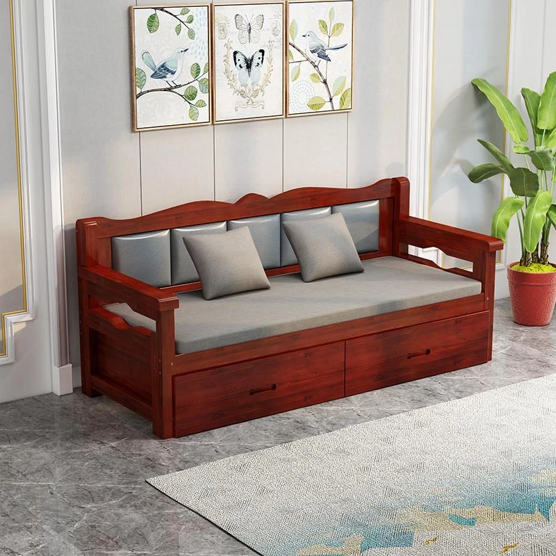【香港送料無料】新中式デザインの天然木製ソファ - スタイリッシュでコンパクトな小型リビングに最適!収納引き出し付きで便利さも兼ね備えた現代的な選択。