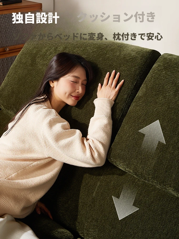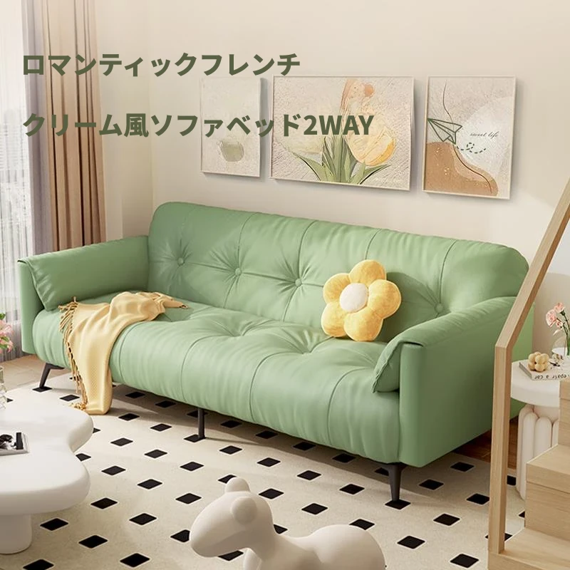 【香港送料無料】おしゃれなグリーンソファベッド!小さなリビングにぴったり、折りたたみ式で便利なクリーム風雲朵デザイン。賃貸にも最適なフレンチスタイル!