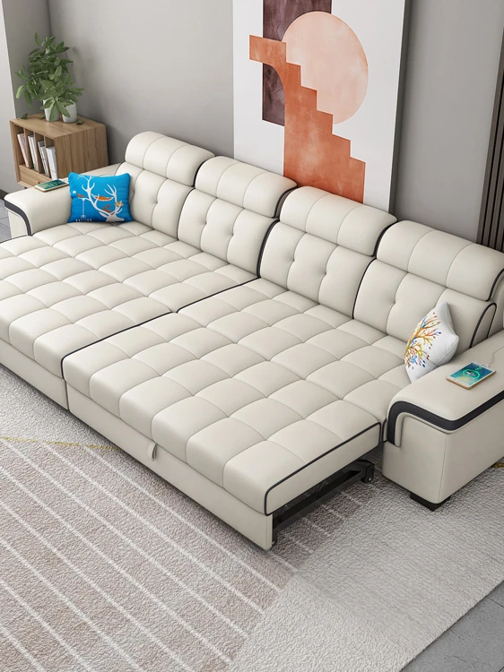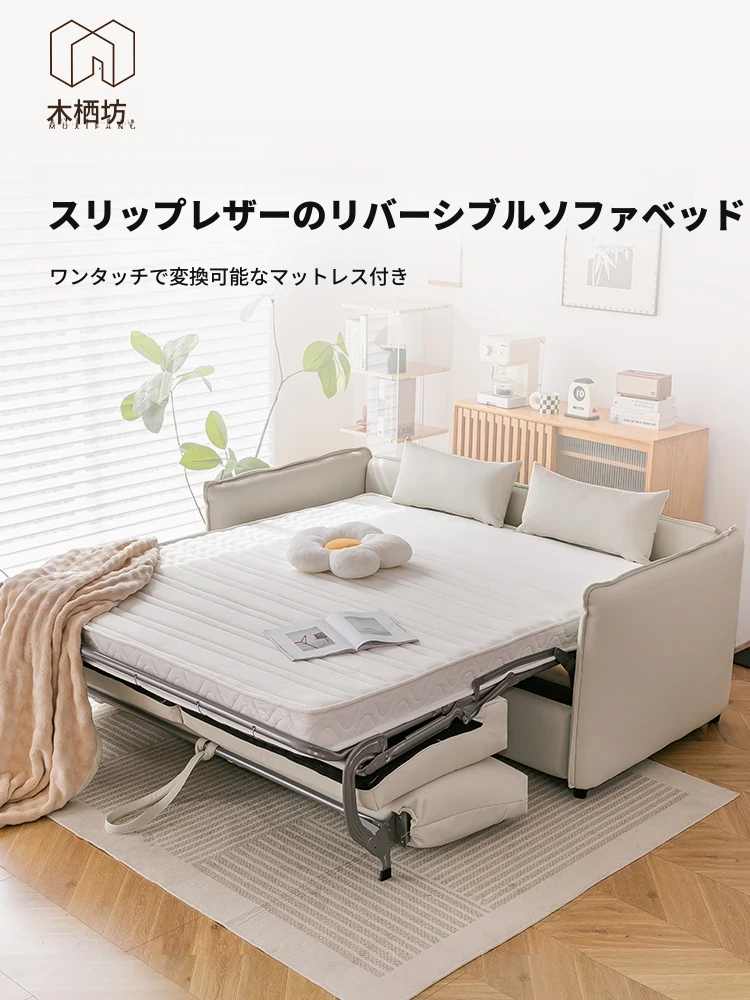 木栖坊の本革ソファベッド - 一体型・折りたたみ式の多機能デザイン!新発売の小型住宅向け、マットレス付きで快適な寝心地を実現。おしゃれで実用的なリビングの必需品!