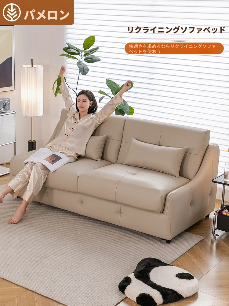 高級ミニマリスト本革リクライニングソファベッド - マットレス一体型、折りたたみ可能で多機能!小型住宅に最適なリビングルーム用。快適さとスタイルを兼ね備えた一品です!