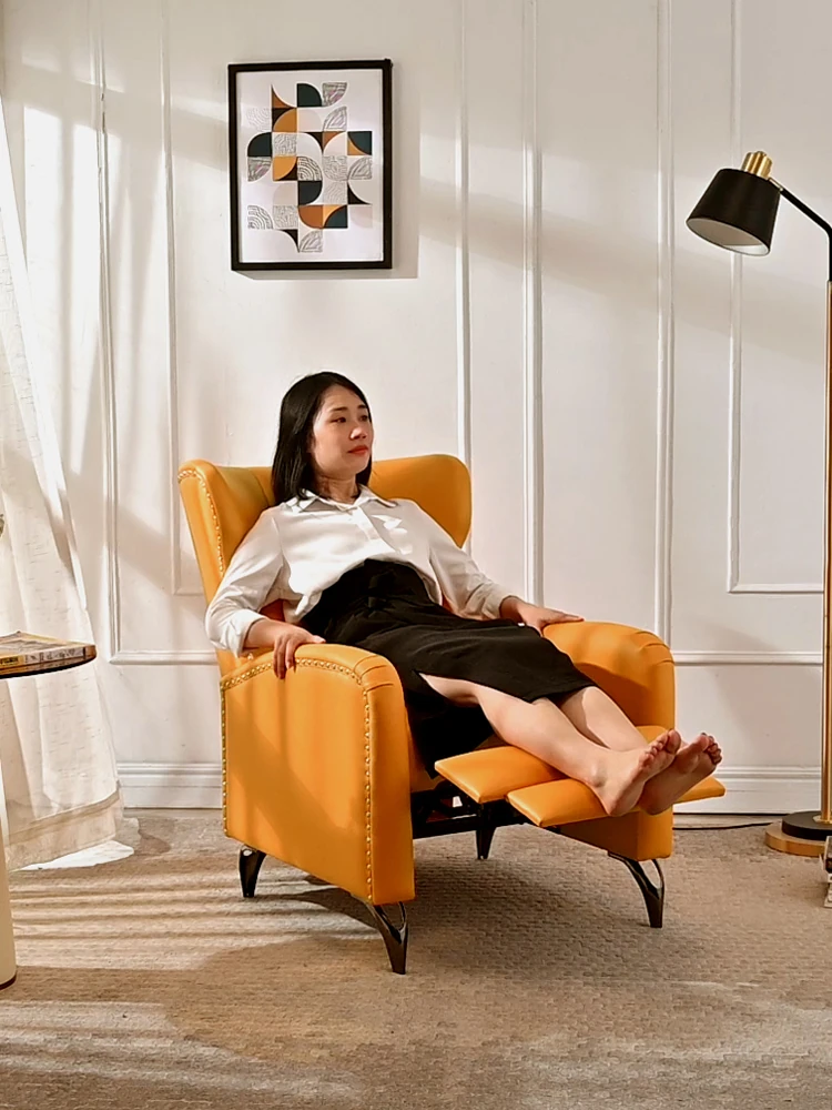 機能的なソファチェア|リラックスできる軽やかなアメリカンスタイルの本革ソファ|デザイナーによる一人用リビングチェア|リクライニング機能付きで快適な空間を実現!