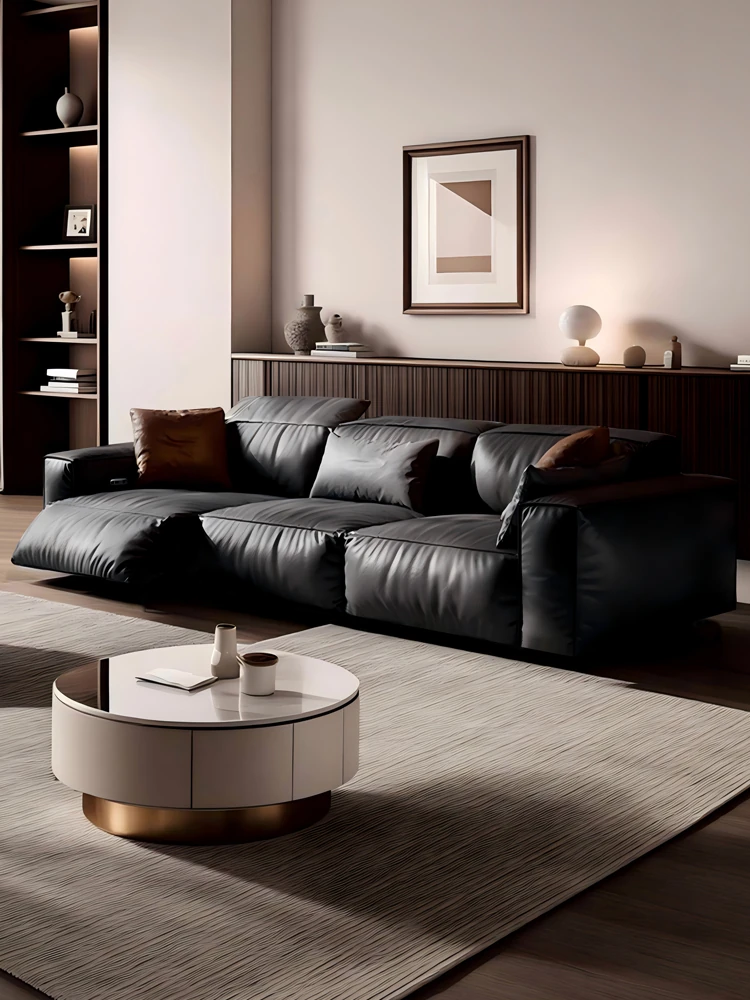 壁に寄りかからない電動ソファ フレンチビンテージスタイル リビングにぴったりなトーフブロックソファ 調節可能なブラック機能的本革ソファで、スタイリッシュな空間を演出!
