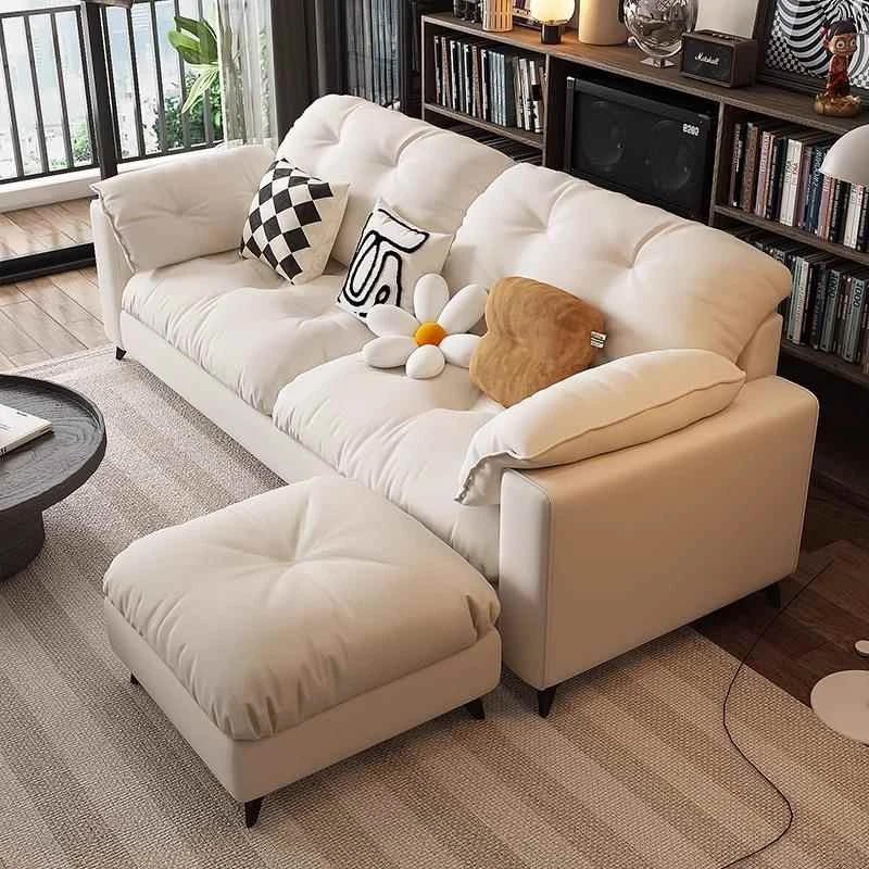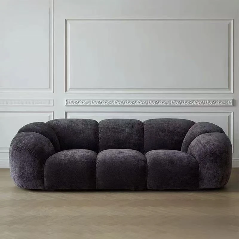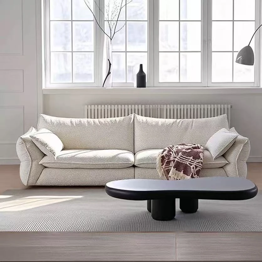 フランス風クリームカラーの豆腐ブロックソファー|スノーニル生地使用|小型住宅に最適なリビング用ブラックソファー|おしゃれで快適な空間を演出!