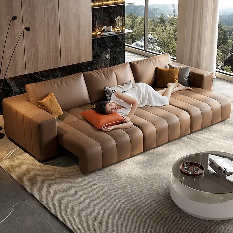 木栖坊の電動レザーリクライニングソファベッド - スペースを有効活用する小型リビング向け、折りたたみ機能付きの多機能新型デザイン!優雅なデザインと快適な使い心地で、あなたのリビングルームをスタイリッシュに演出します。