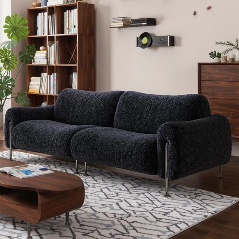 イタリアンミニマルレトロデザインのシェニールソファ - 中古風のリビングルームにぴったりな小型3人掛け布張りソファ!宿泊施設にも最適なスタイリッシュで快適な選択肢です。