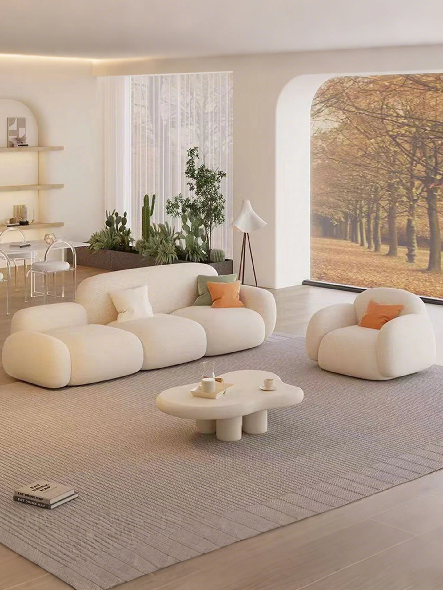 クリーム風のファブリックソファ 小型リビングに最適!軽やかでラグジュアリーなネット人気商品 2025年新作 クラウドデザインの直列豆腐ブロックソファで、おしゃれな空間を演出!
