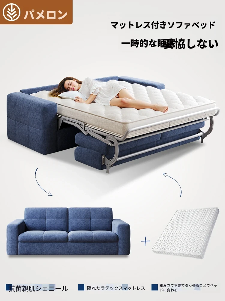 長時間使用可能なリバーシブルソファベッド!シンプルでモダンなデザイン、リビングにぴったりの二人用小型マルチファンクション折りたたみベッド。快適な眠りとおしゃれな空間を実現します!