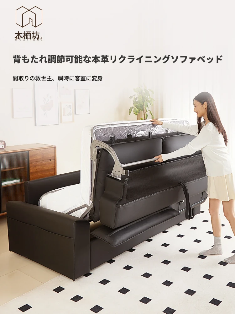 木栖坊の高級本革リバーシブルソファベッド - 折りたたみ式で2つのスタイルを楽しめる!2025年新作、マットレス付き、小型リビングに最適な一体型デザイン。スタイリッシュで機能的な空間を演出します!