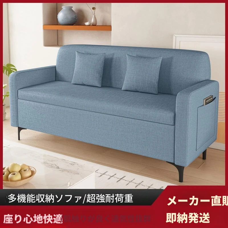 【香港送料無料】北欧スタイルの布製一人用ソファ!小さなリビングや寝室にぴったりのトレンディな収納付きデザイン。オフィスにも最適!快適さとスタイルを両立させた一品!