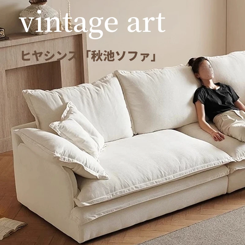 侘寂風デザインのリネンソファ|小型リビング向け|洗えるカバー付き|クリーミーな雰囲気の民宿スタイル|コットンリネンの抱きしめソファで、心地よい空間を演出!