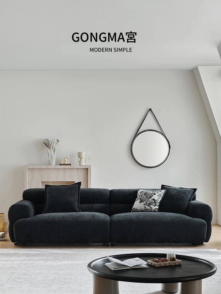 宮瑪/黒豆ソファ レトロバウハウス デザイン ブラックファブリック ソファ 小型リビングに最適 モダンで洗練された直線的なデザイン