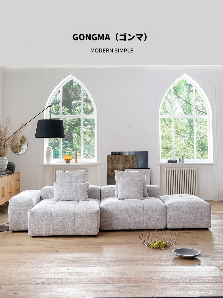 宮瑪/ピクセルSABAモジュラーファブリックソファ - イタリアンミニマリズムの豆腐ブロックデザイン、大型リビングやヴィラに最適。快適な座り心地で、洗練された空間を演出します!