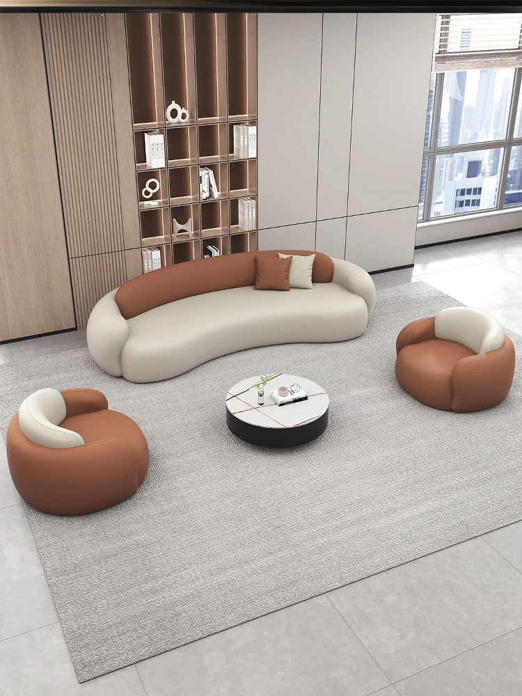 現代的シンプルなデザインの販売センター向けビジネスオフィス用アポイントメントエリアに最適!北欧スタイルのミニマリスト家具、大小さまざまなリビングルームにぴったりのアーチ型ソファセット。あなたの空間を洗練された雰囲気に演出します。