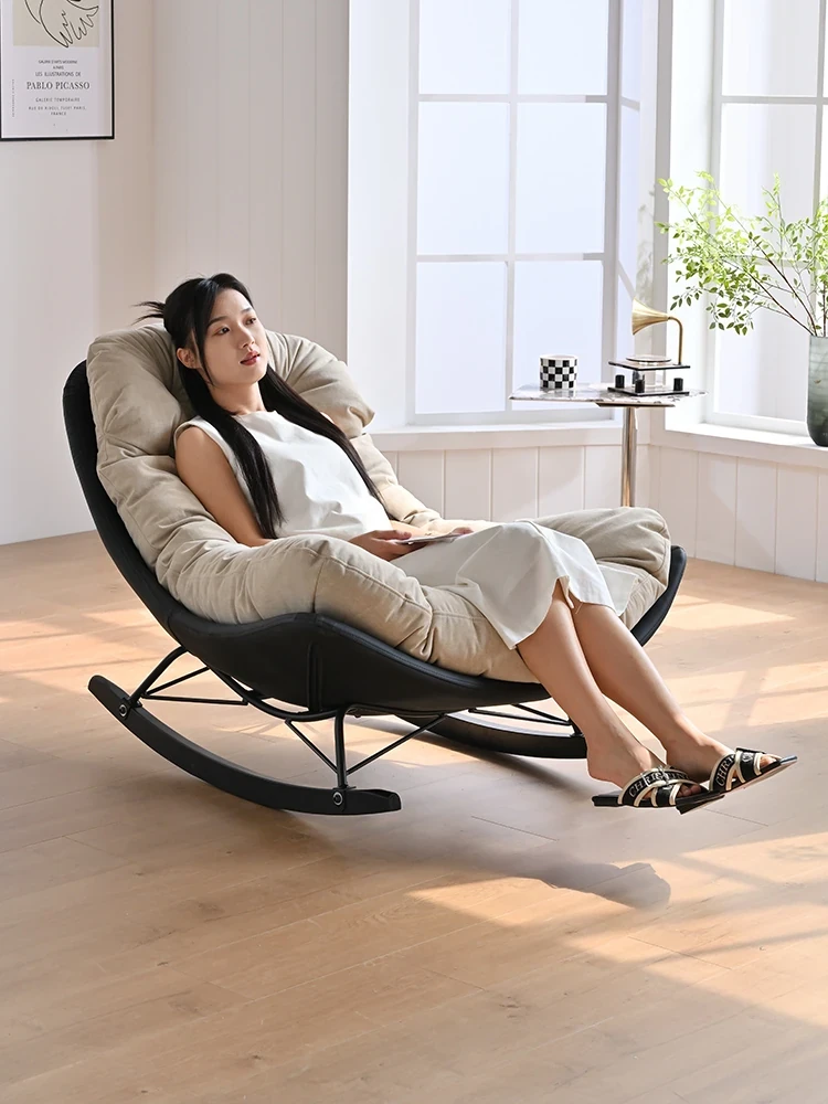 Modern Minimalist Designer Rocking Chair - Trendy Lounge Chair for Living Room and Balcony, Perfect for Relaxation and Leisure, Stylish Mid-range Nap Chair