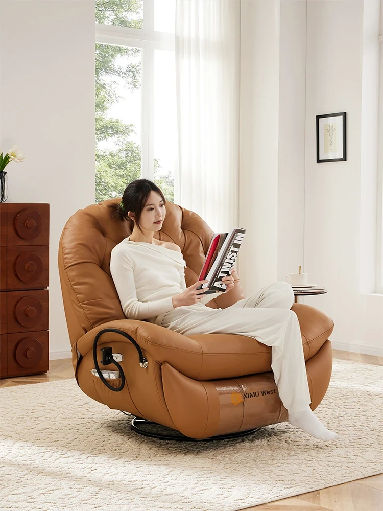 Ximu Leather Recliner Chair - Modern Single Lazy Sofa for Living Room, Rotating Design with Stylish Black Cowhide, Perfect for Relaxation and Comfort