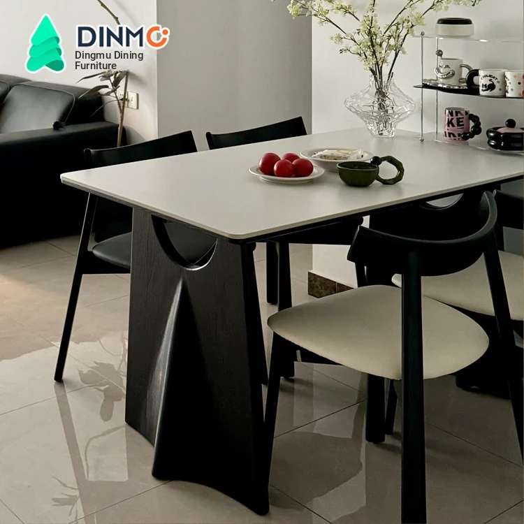 Retro Black Solid Wood Dining Table - Minimalist Designer Rectangular Matte White Stone Top for 2025 - Elevate Your Dining Experience with Timeless Elegance and Modern Style