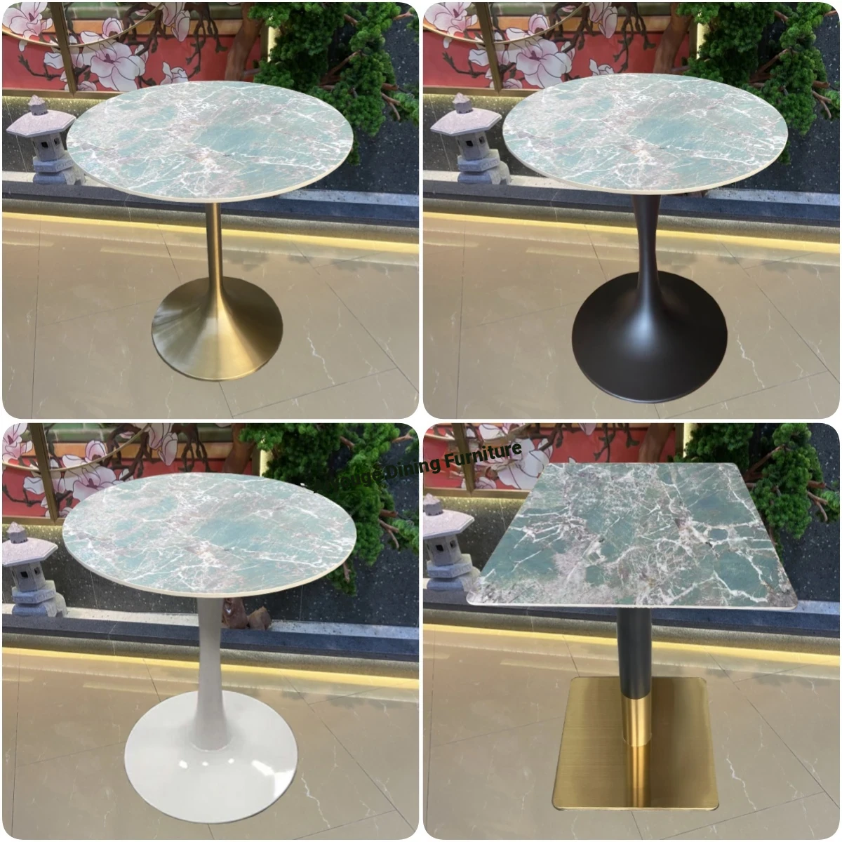 Aluminum-Edged Stone Plate Dining Table - Perfect for Restaurants, Bars, Cafeterias, and Bakeries - Stylish Rectangular and Round Options for Commercial Use
