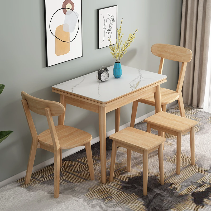 Nordic Solid Wood Dining Table and Chair Set - Space-Saving Rectangular Folding Table for Small Homes, Perfect for Family Meals and Gatherings