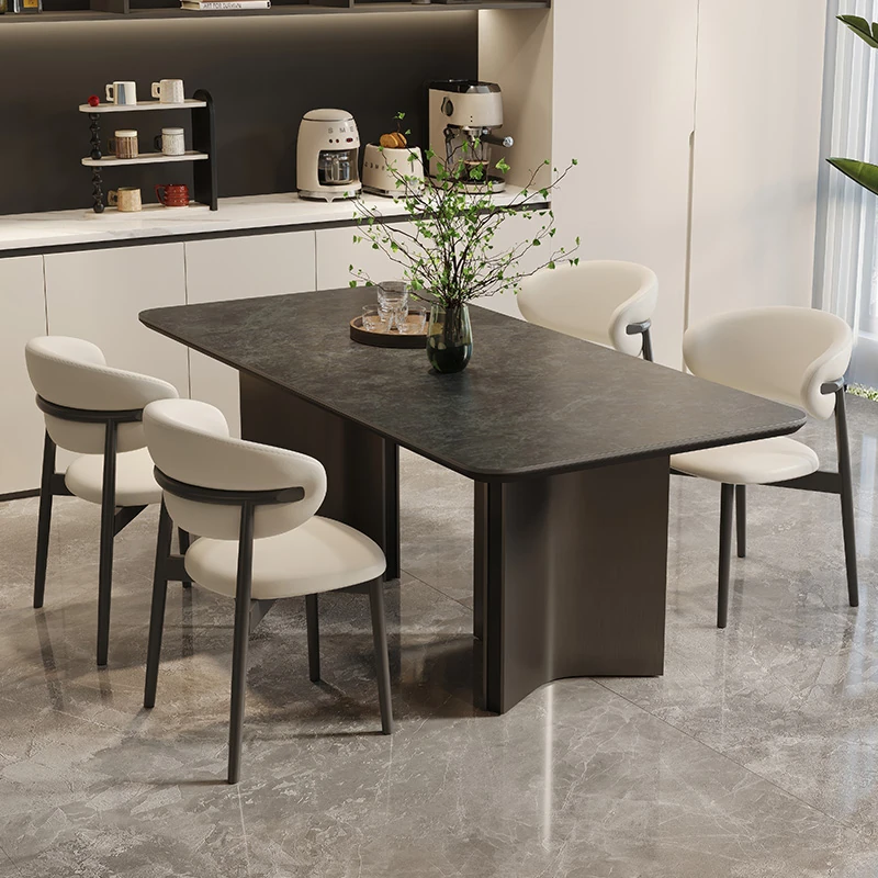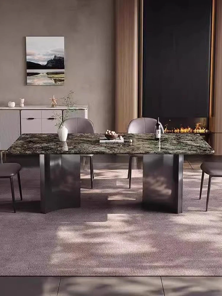 2025 New Italian Luxury Stainless Steel Hanging Rock Plate Dining Table - Modern and Elegant Rectangular Design for Upscale Dining Experience