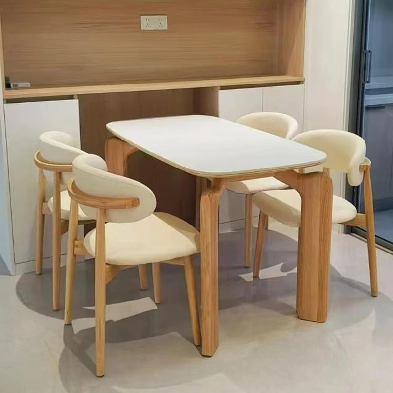 Nordic Solid Wood Cream Style 2024 New Rectangular Dining Table and Chair Set for Small Spaces - Perfect for Cozy Homes!