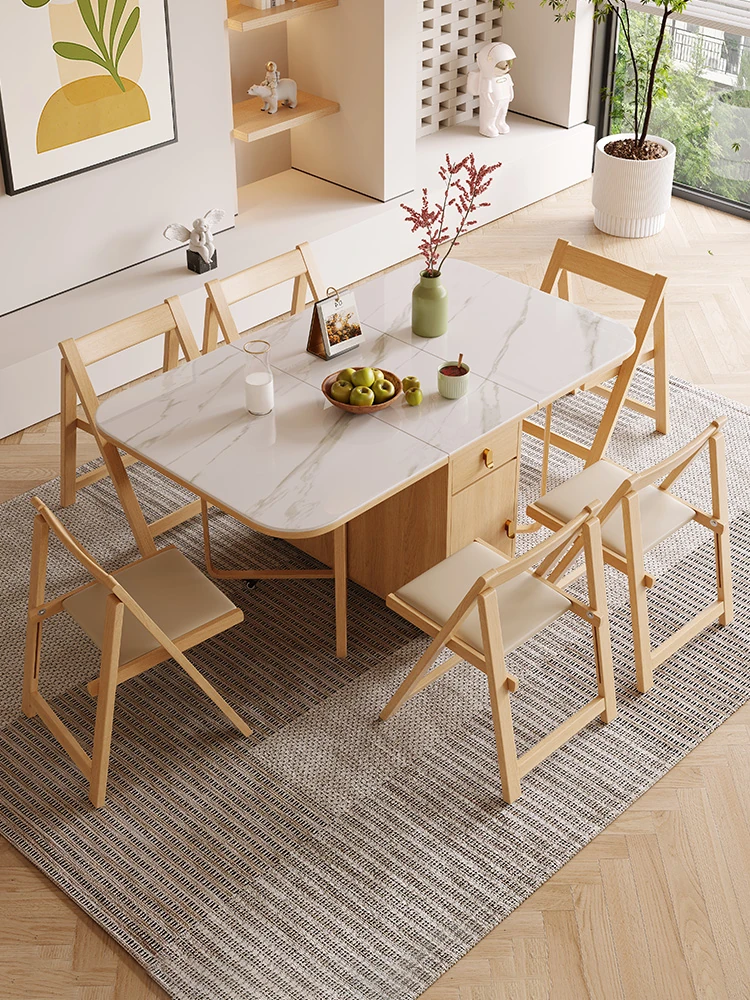 [Free Shipping in Hong Kong] Modern Minimalist Expandable Folding Rock Plate Dining Table and Chair Set - Perfect for Small Spaces