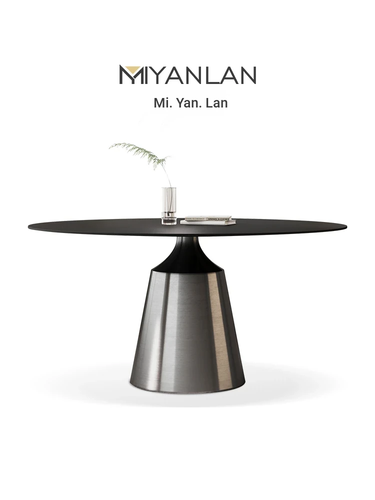 Italian Imported Lamina Stone Dining Table - Minimalist Designer Round Table for Small Homes, Modern and Simple Dining Set