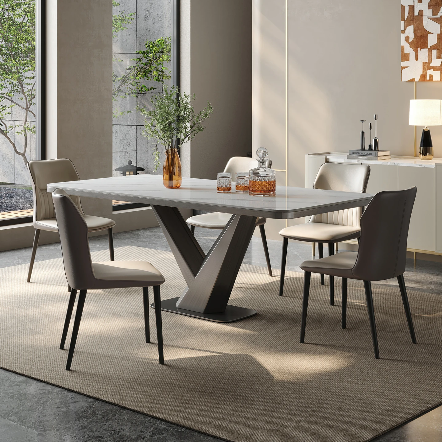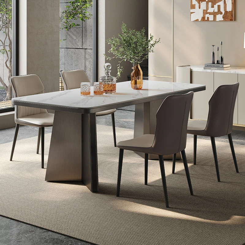 Stylish Italian-Inspired Rectangular Dining Table with Stainless Steel Base - Modern Minimalist Design for Small Spaces, Perfect for Your Home Dining Room