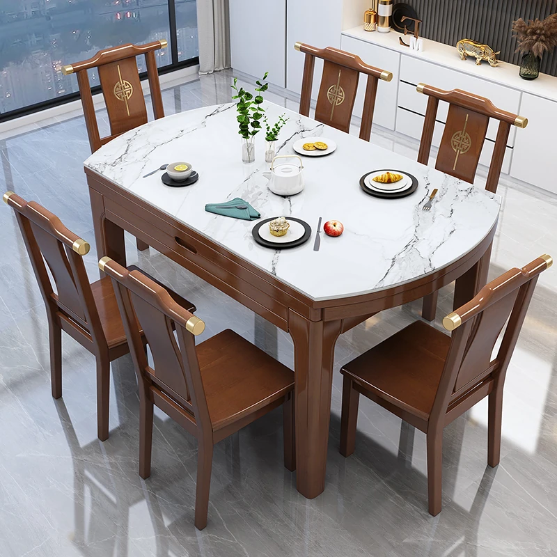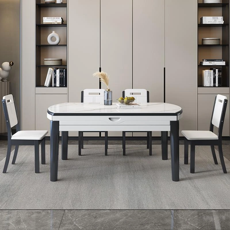 Expandable Solid Wood Dining Table with Rock Board - Multi-functional Rectangular and Round Design for Small Spaces, Perfect for Home Use!