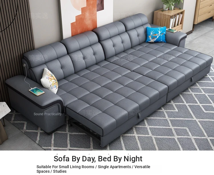 2025 New Compact Sofa Bed - Cream Multifunctional Tech Fabric Chaise Lounge for Small Living Rooms, Perfect for Modern Spaces!