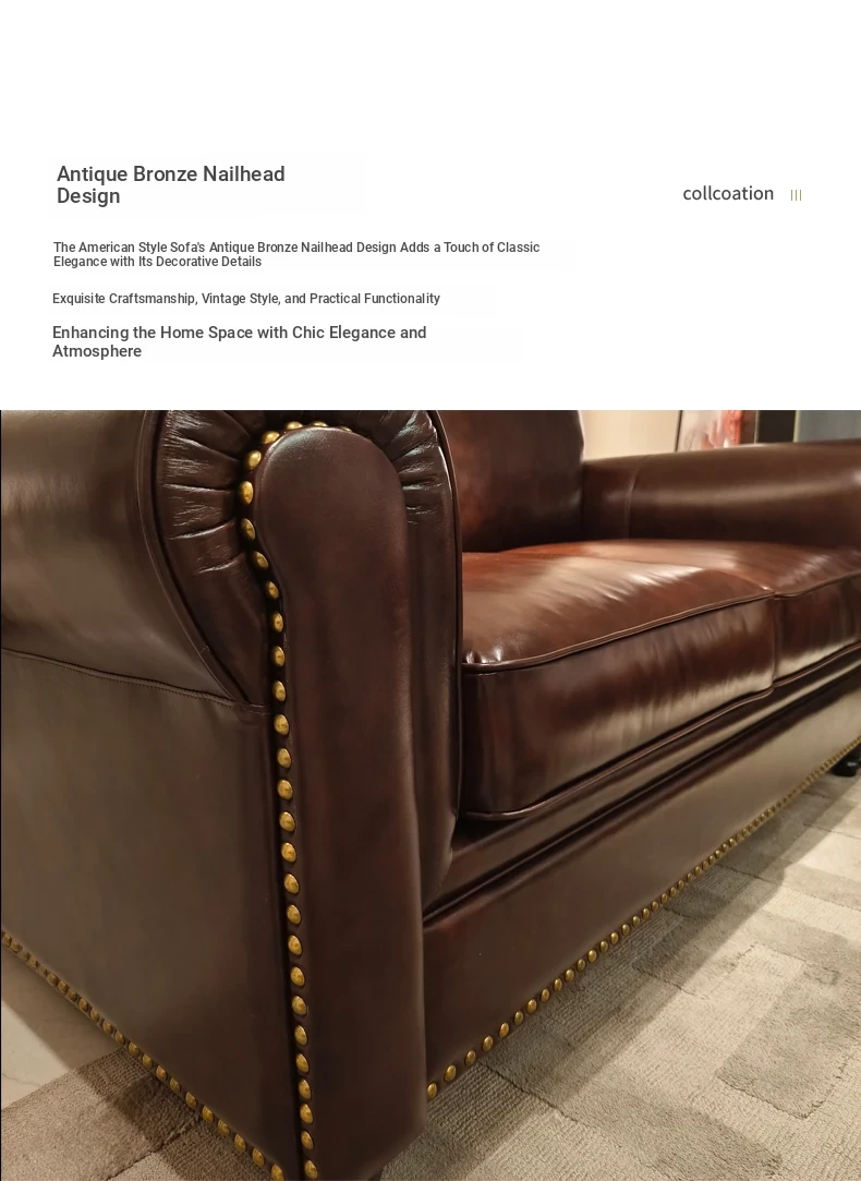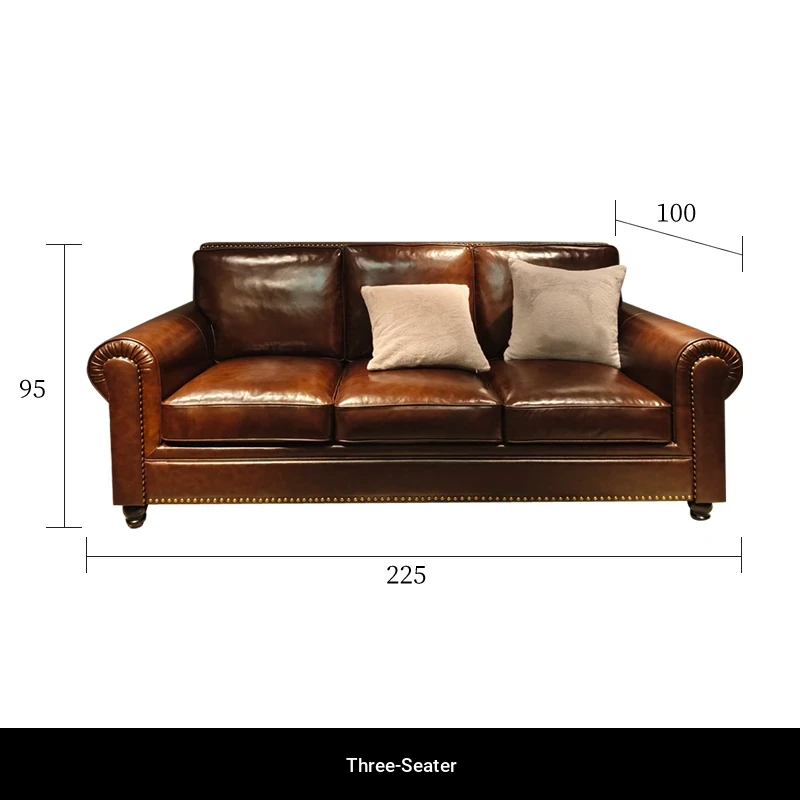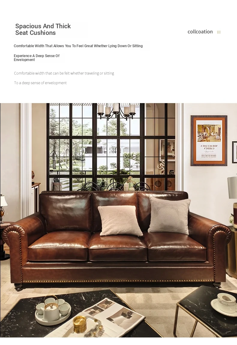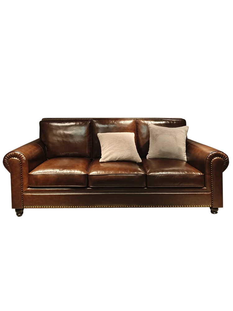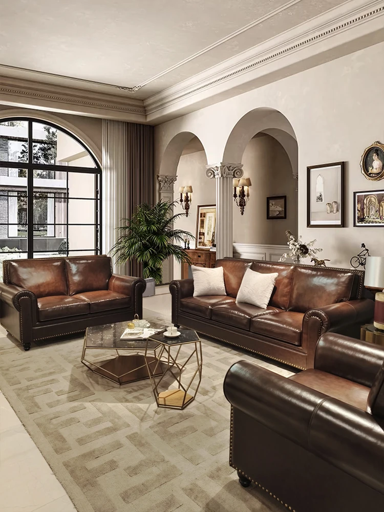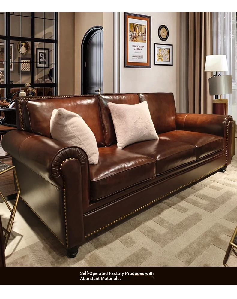 2025 New Vintage Italian Top Grain Leather Sofa Set - Classic American Style Brown Living Room Furniture by Big Barton