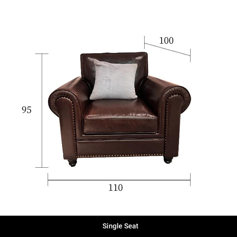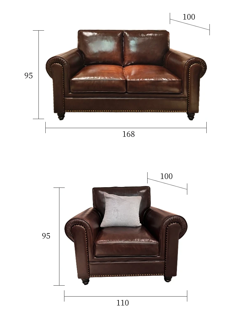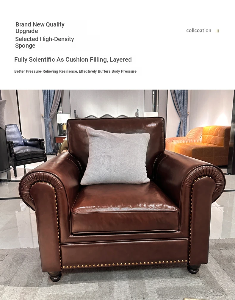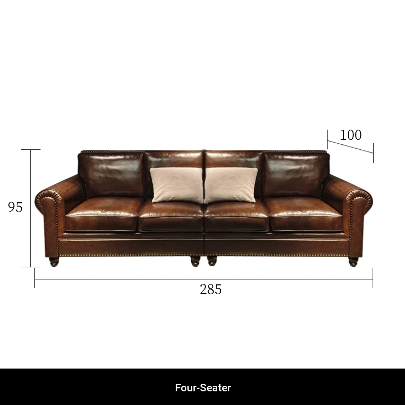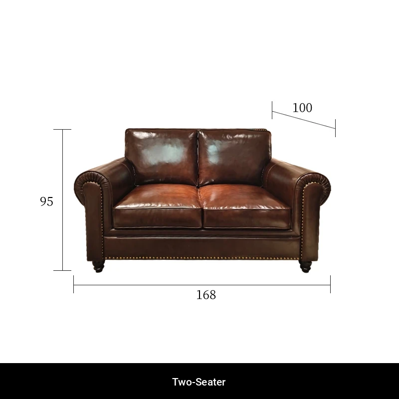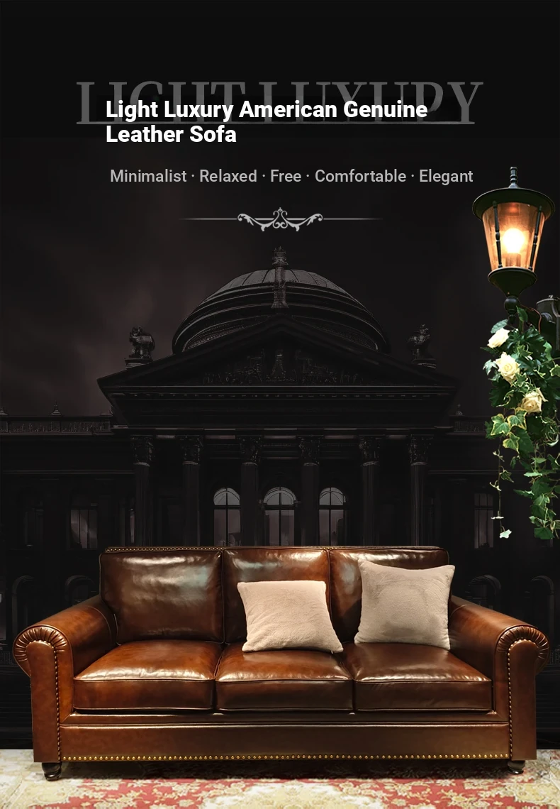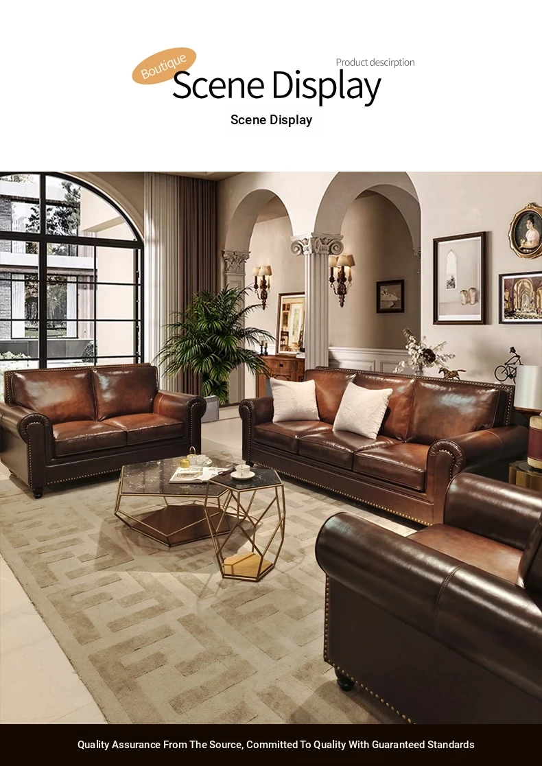 2025 New Vintage Italian Top Grain Leather Sofa Set - Classic American Style Brown Living Room Furniture by Big Barton