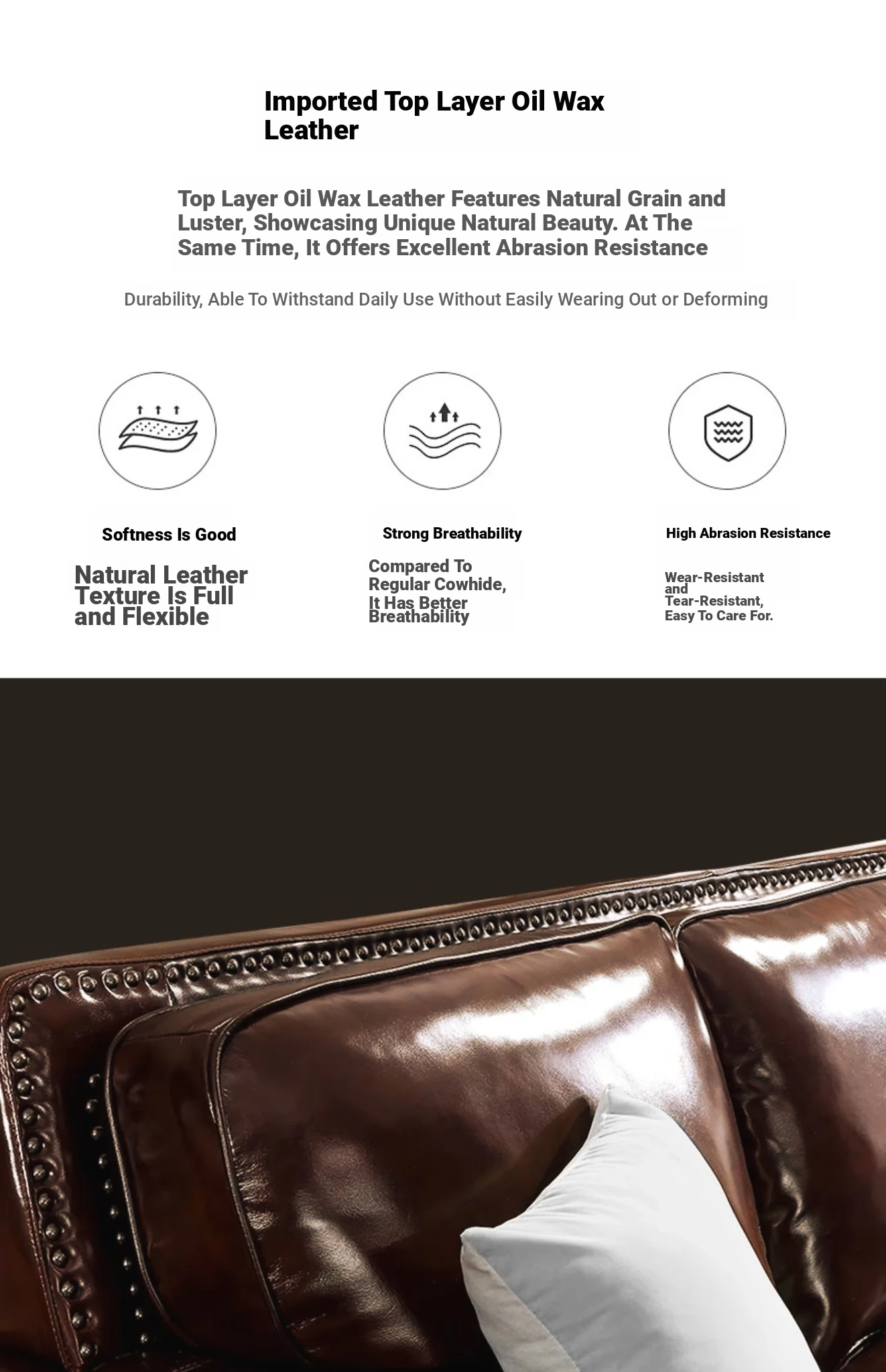 Italy imports top layer oil wax leather + velvet. Big Three