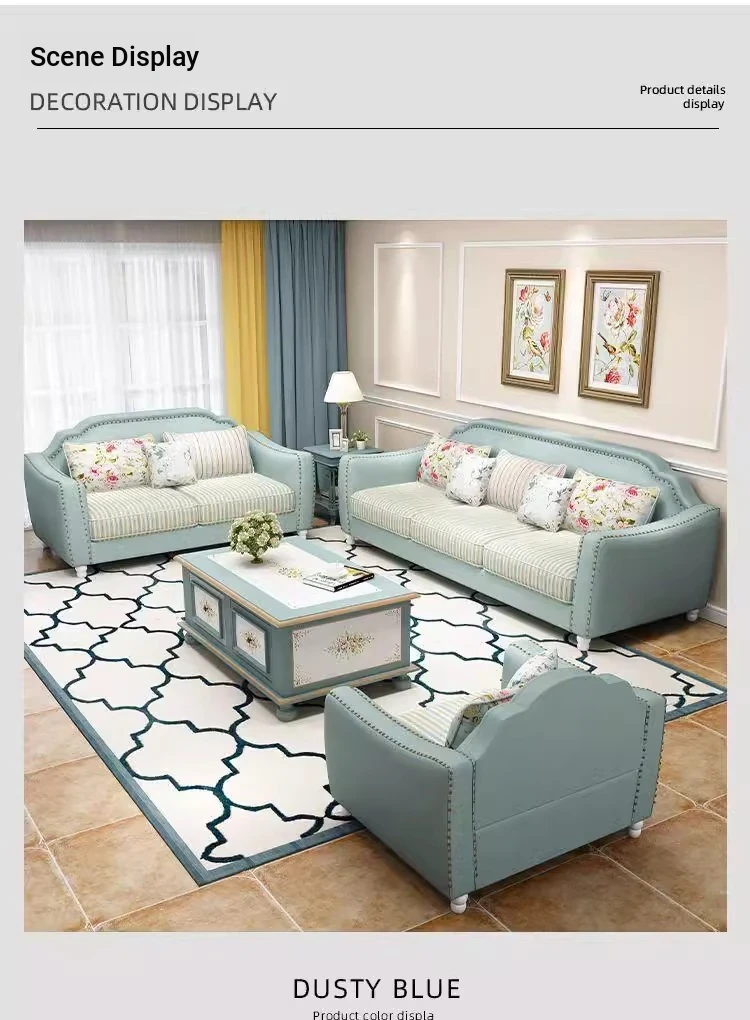 American Style Sofa Set - Rustic Mediterranean Living Room Sofa for Large Spaces, Available in Single, Double, and Triple Seat Options. Perfect Blend of Comfort and Charm for Your Home!