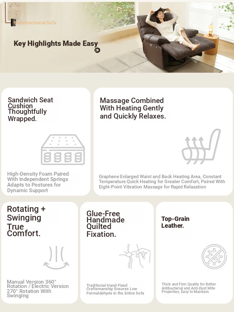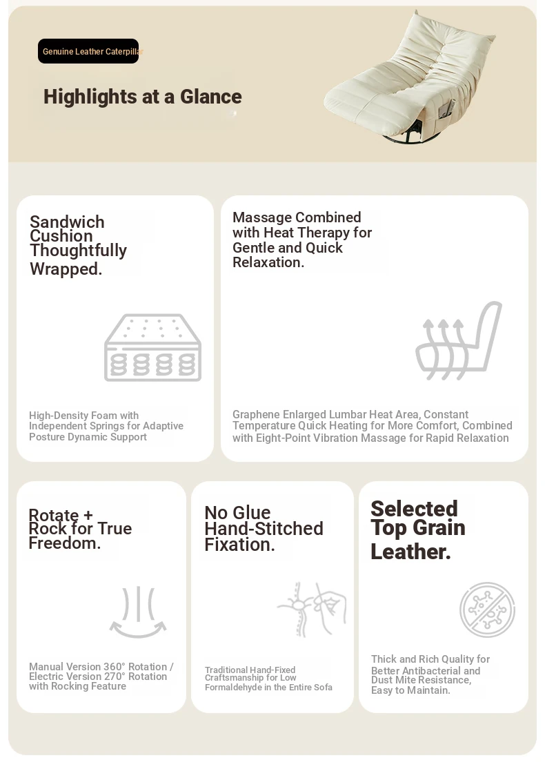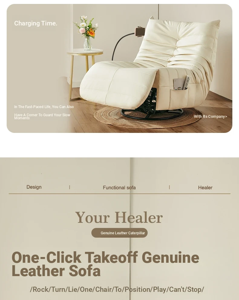 Genuine Leather Caterpillar Single Multifunctional Sofa - 2025 New Model Electric Recliner with Space Capsule Design for Your Living Room
