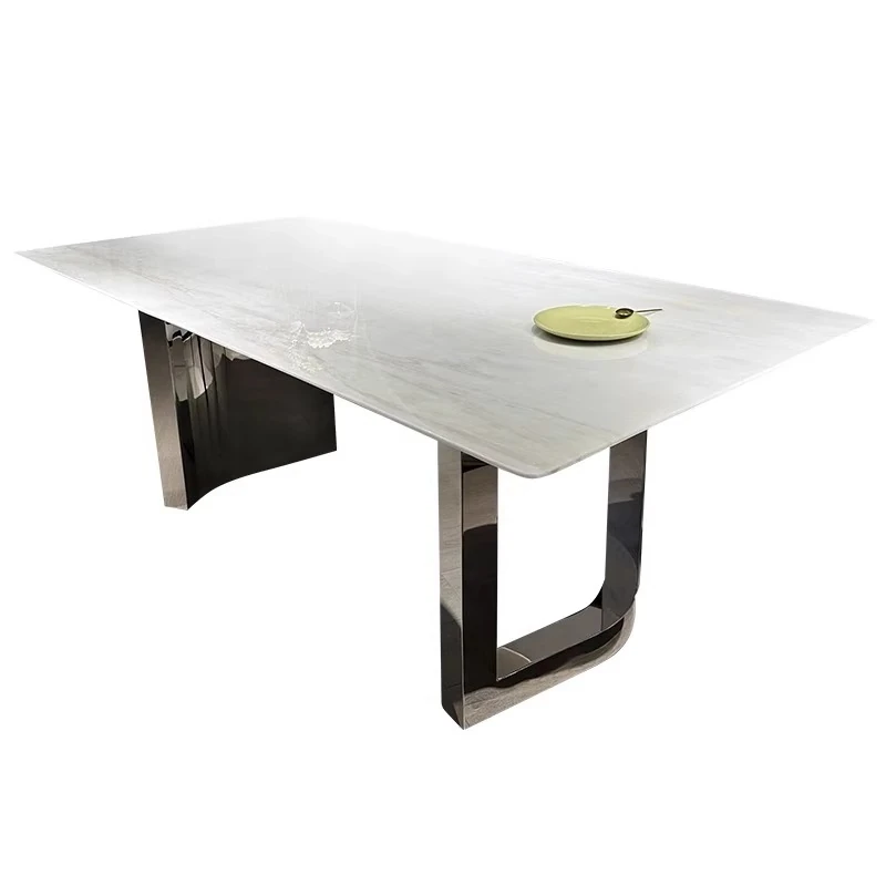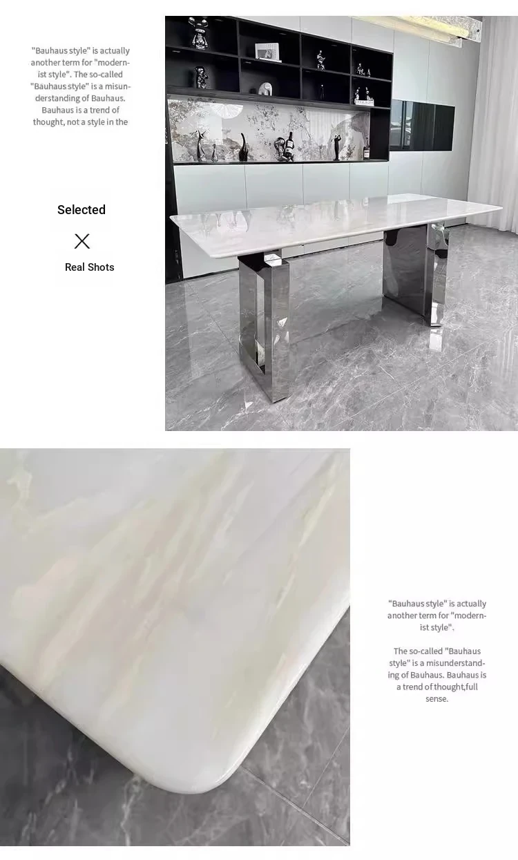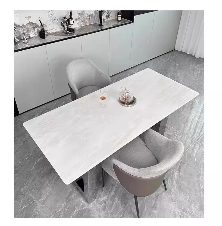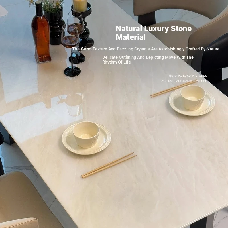 Imported Milan White Jade Luxury Stone Dining Table - Natural Kalin Ice Jade Marble Rectangular Table for Home Use in Large Villas