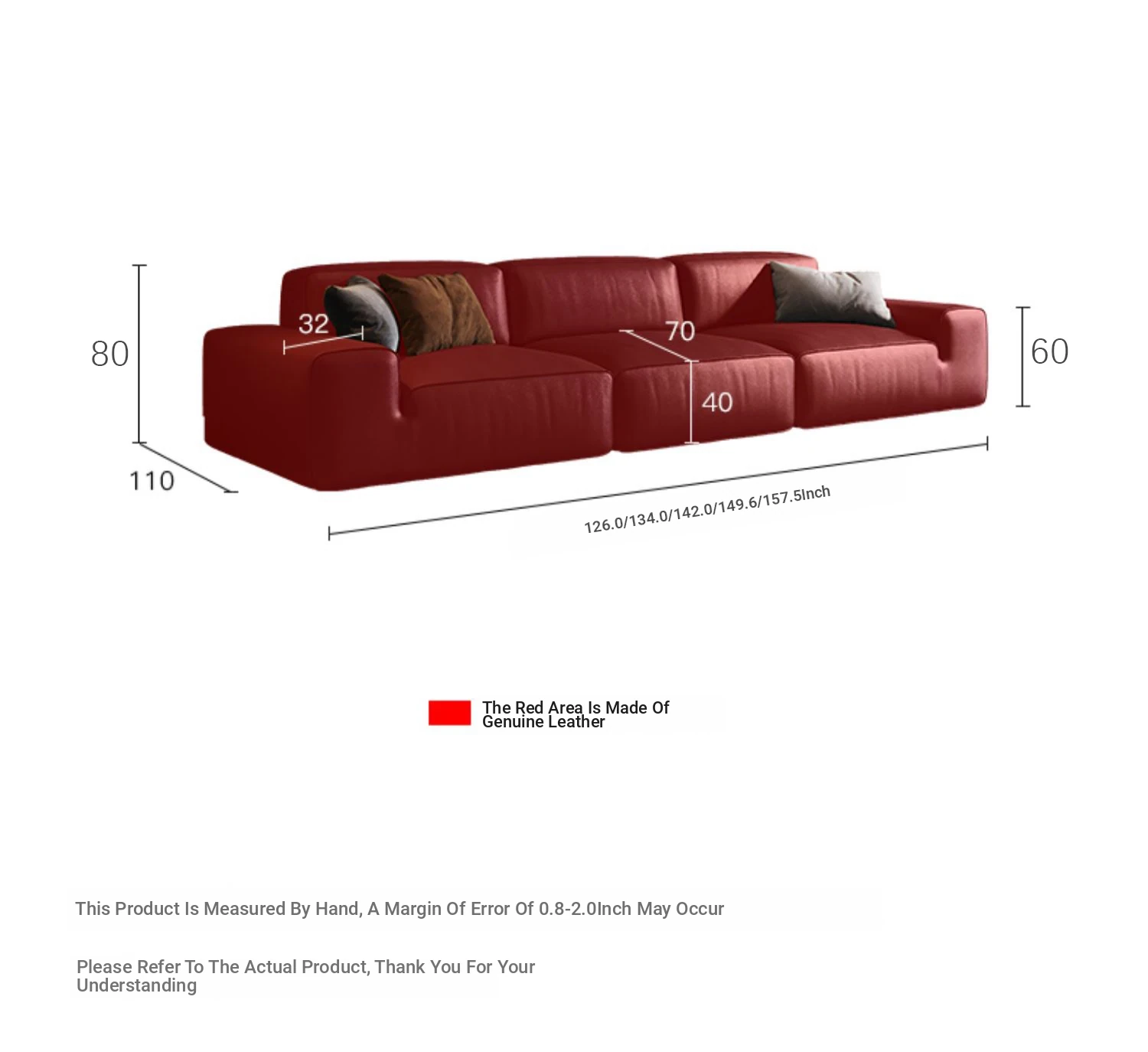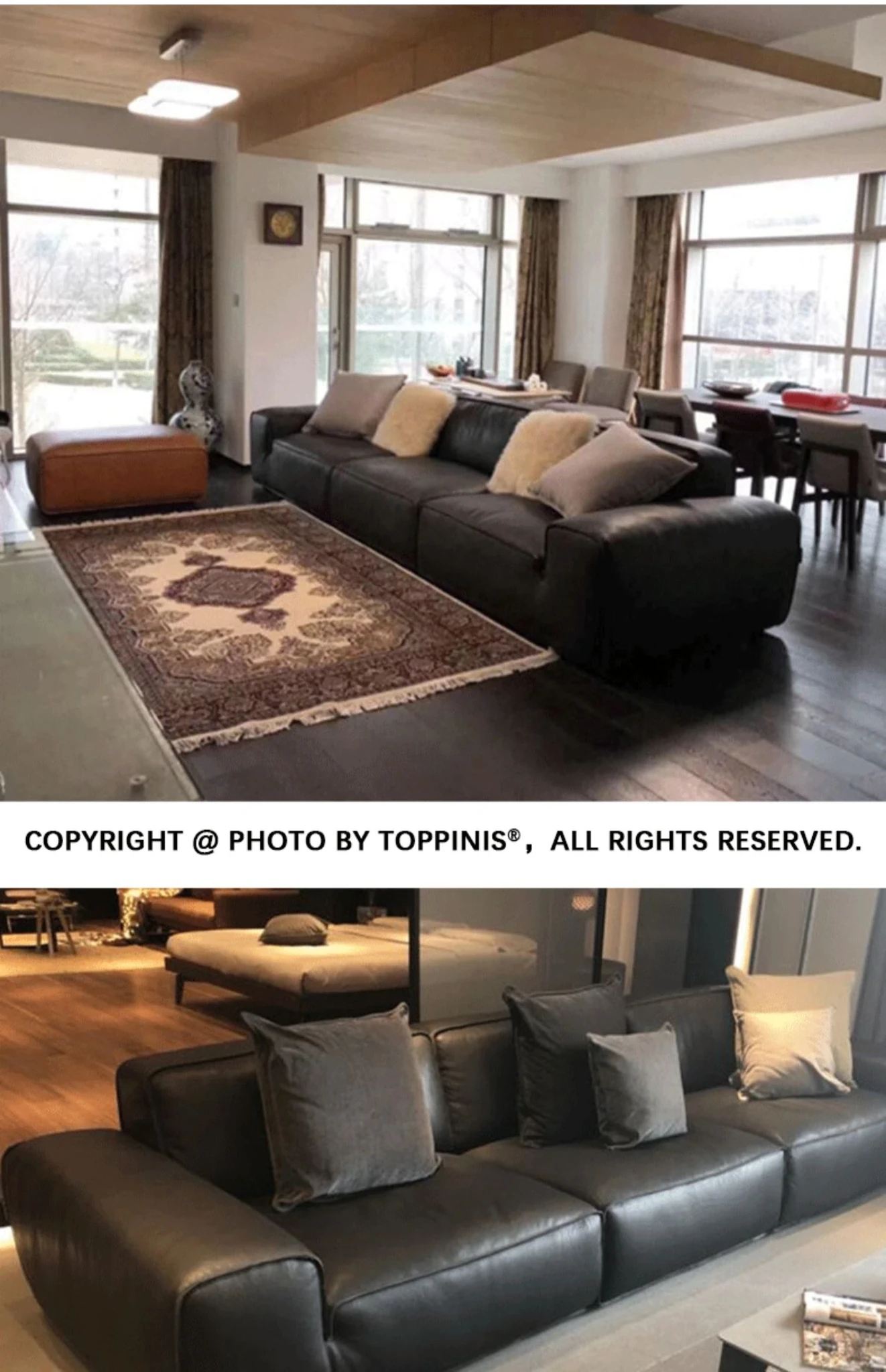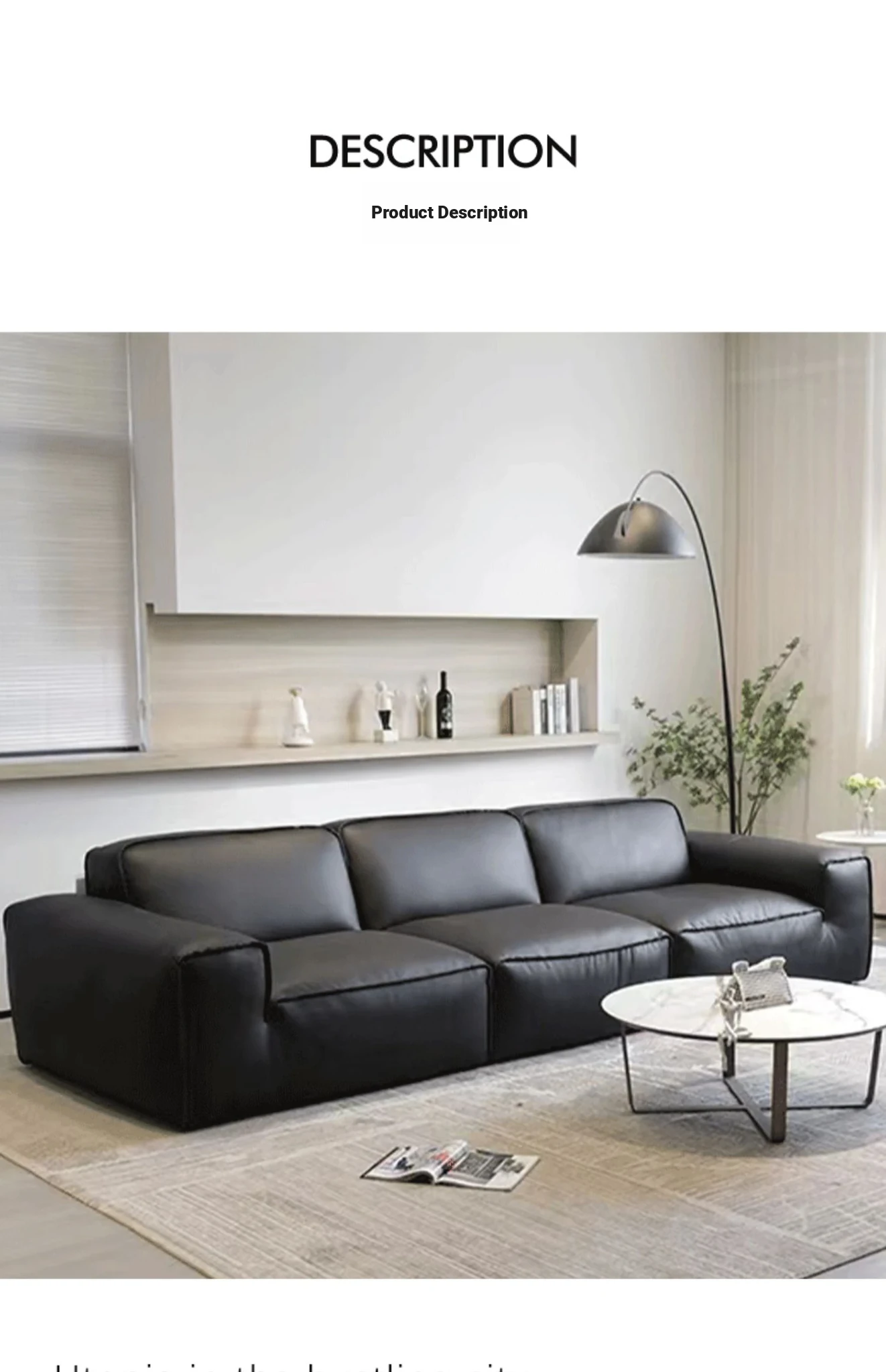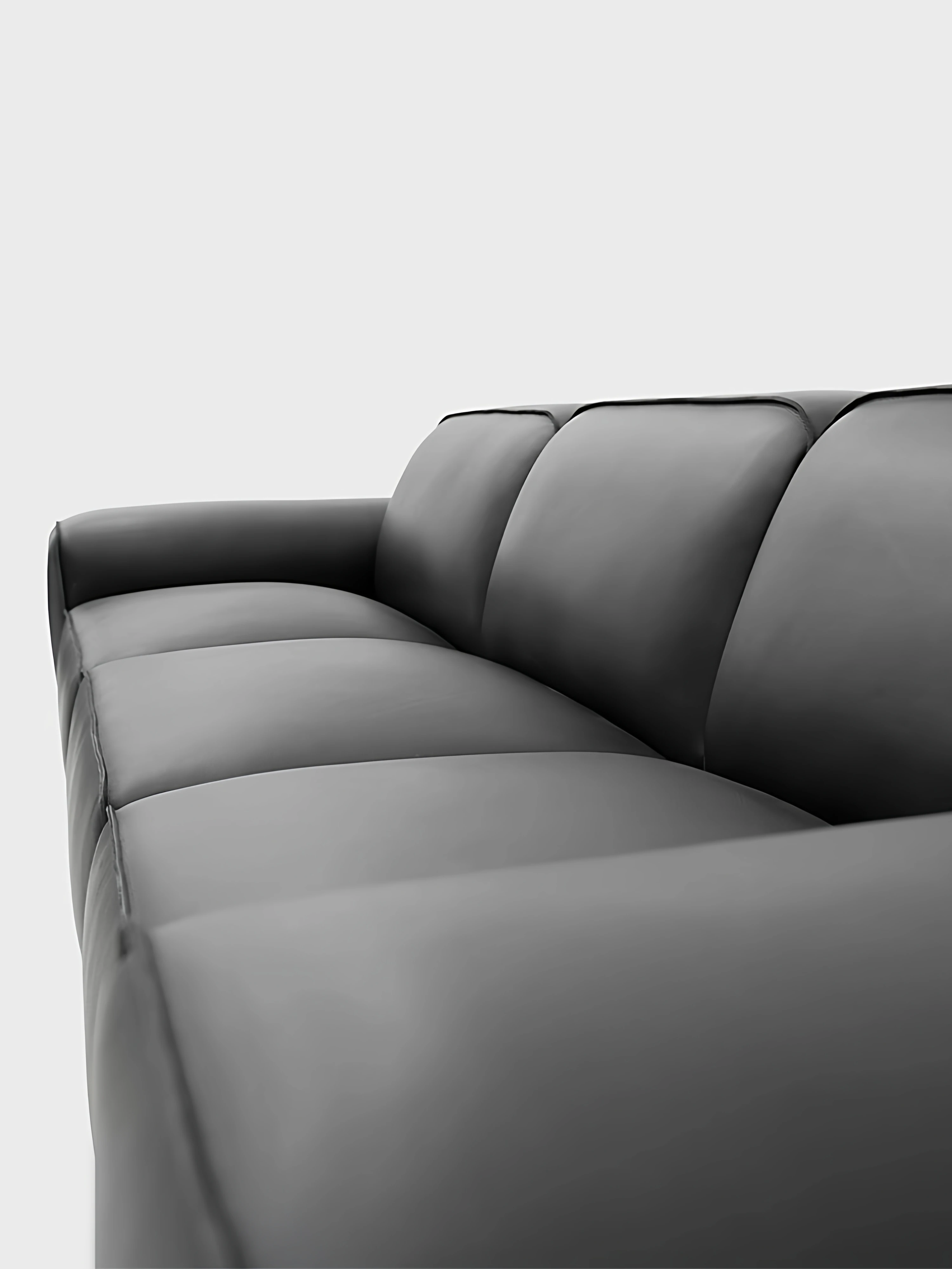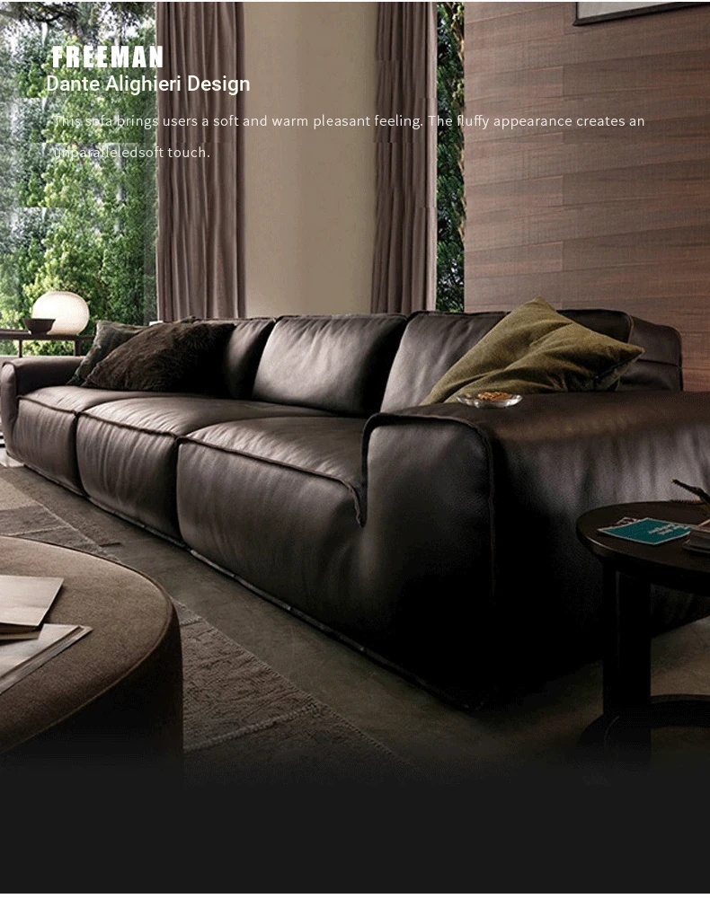 Modern Minimalist Large Black Cow Leather Sofa with Tofu Block Design for Small to Medium Living Rooms - Top Grain Genuine Leather, Perfect for Stylish Comfort