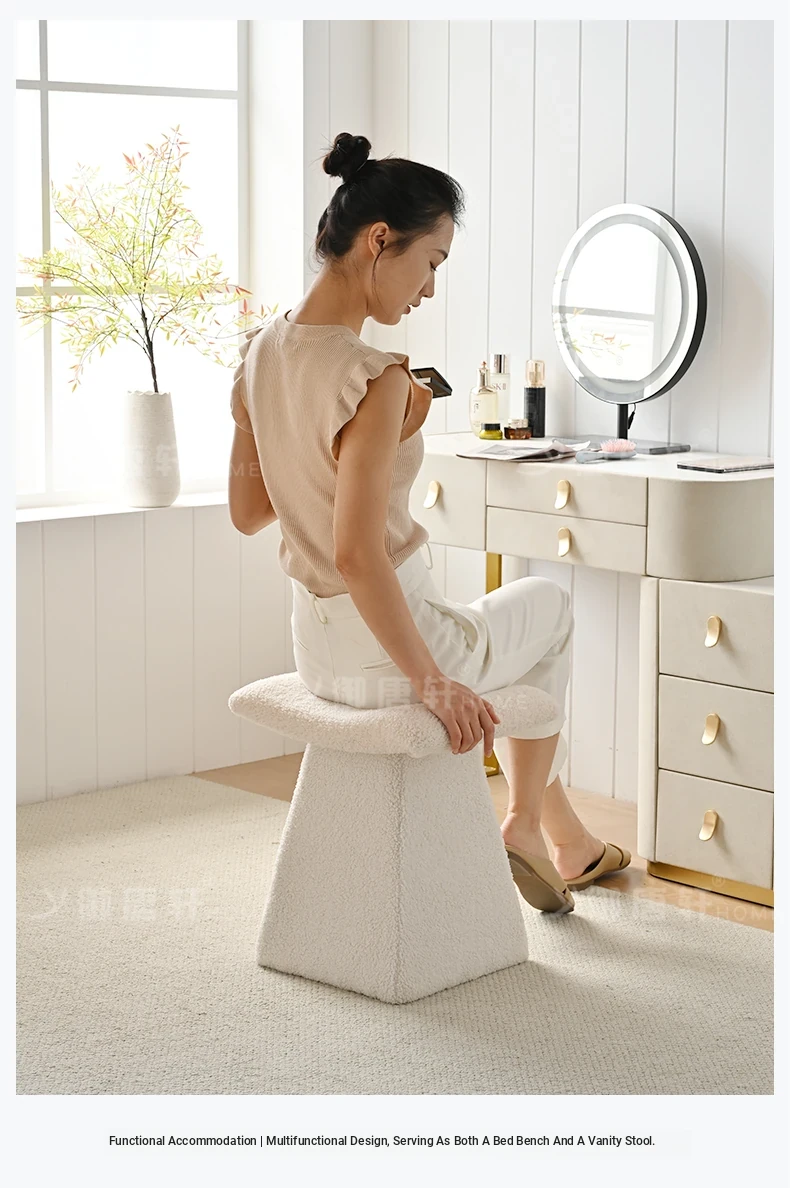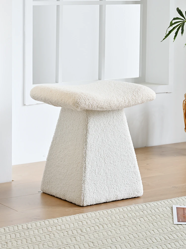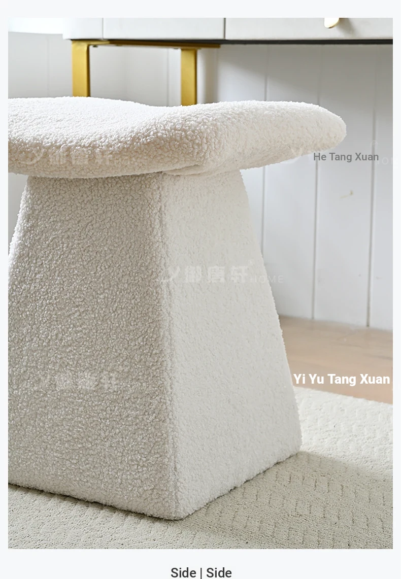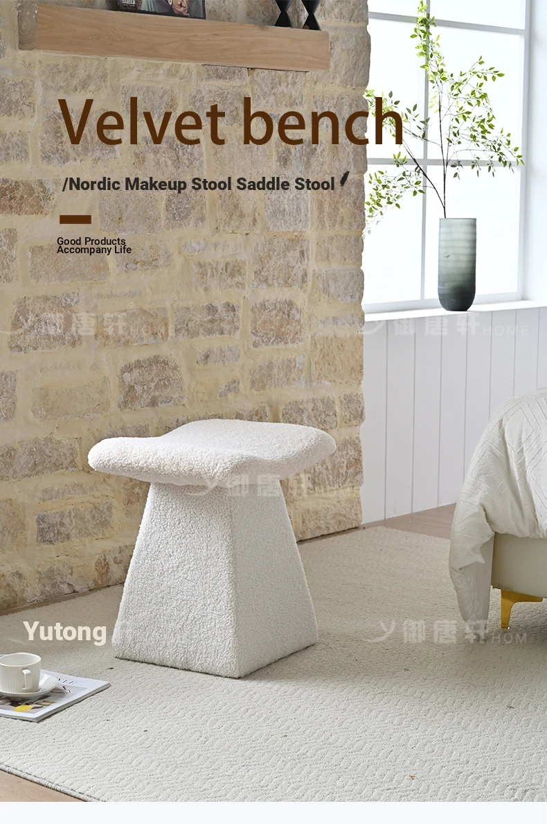 Yutangxuan Minimalist Makeup Stool - Stylish Sofa Bench for Bedroom, Vanity Chair with Cozy Lamb Wool, Perfect for Nail Art and Shoe Changing - Elevate Your Space!