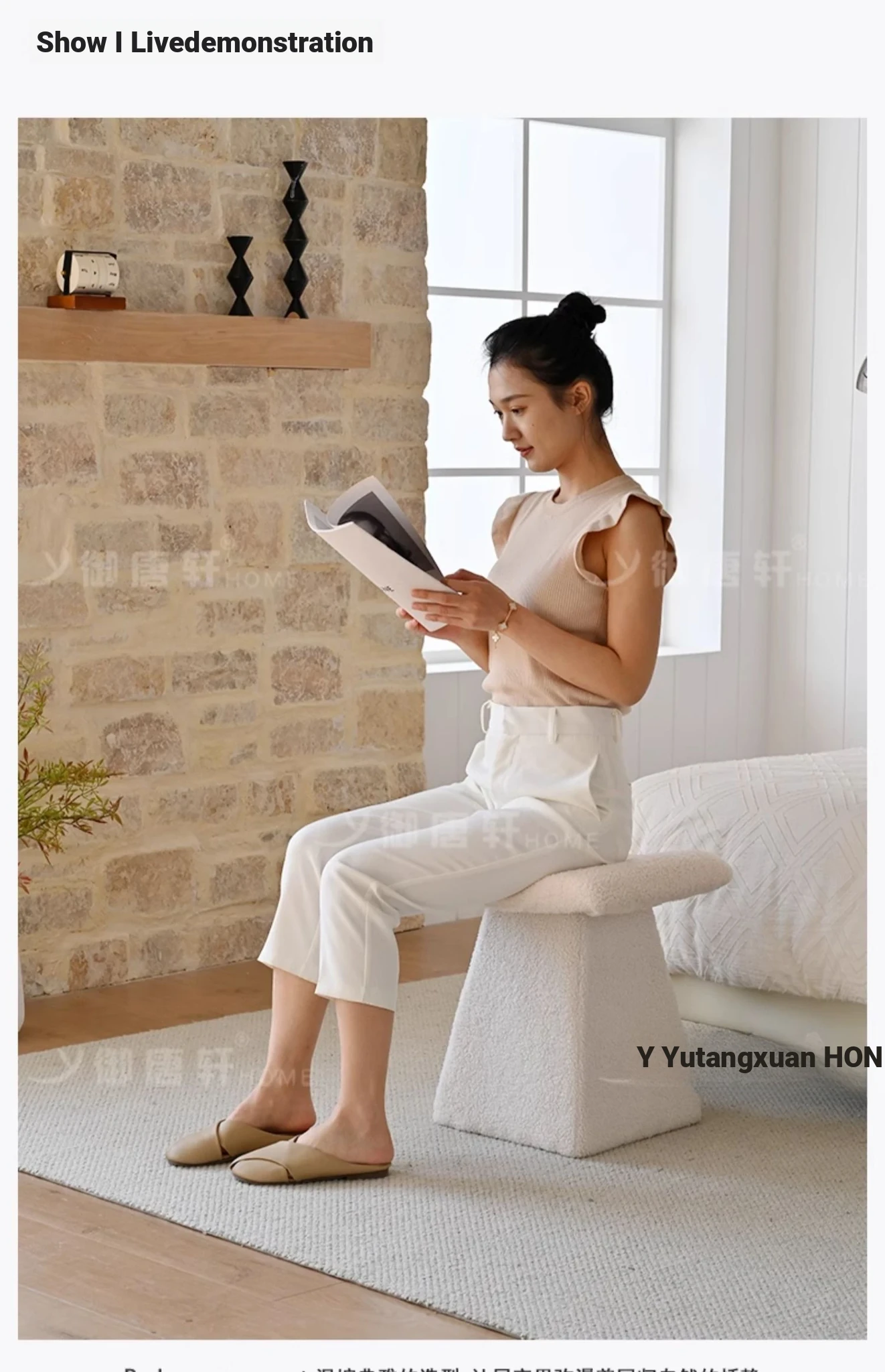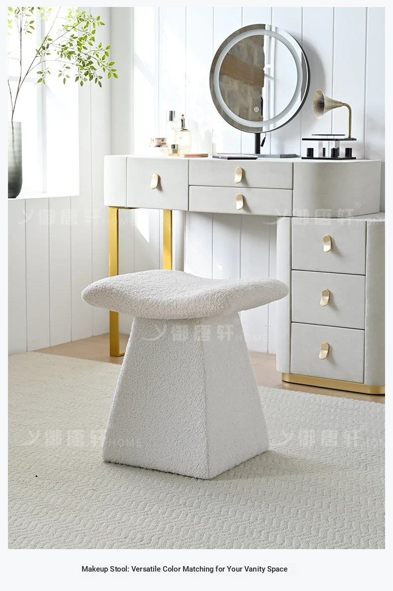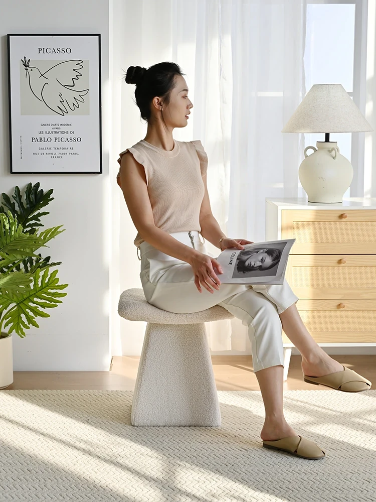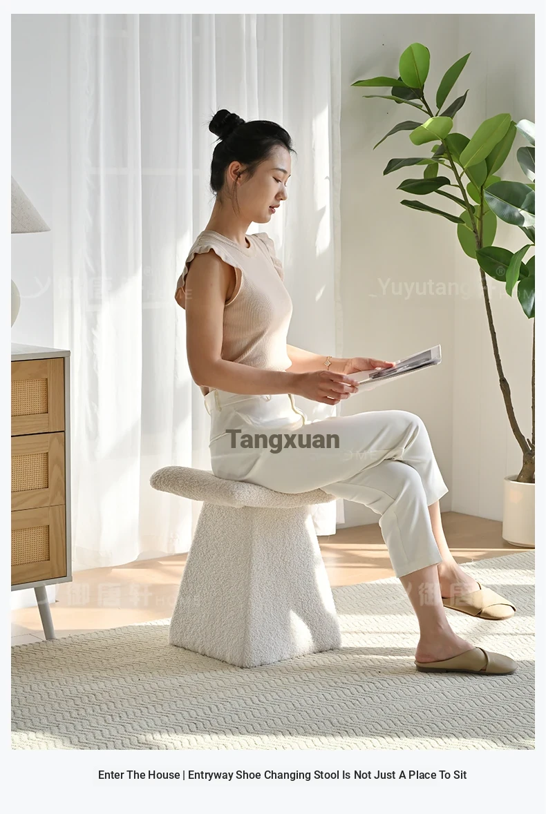 Yutangxuan Minimalist Makeup Stool - Stylish Sofa Bench for Bedroom, Vanity Chair with Cozy Lamb Wool, Perfect for Nail Art and Shoe Changing - Elevate Your Space!