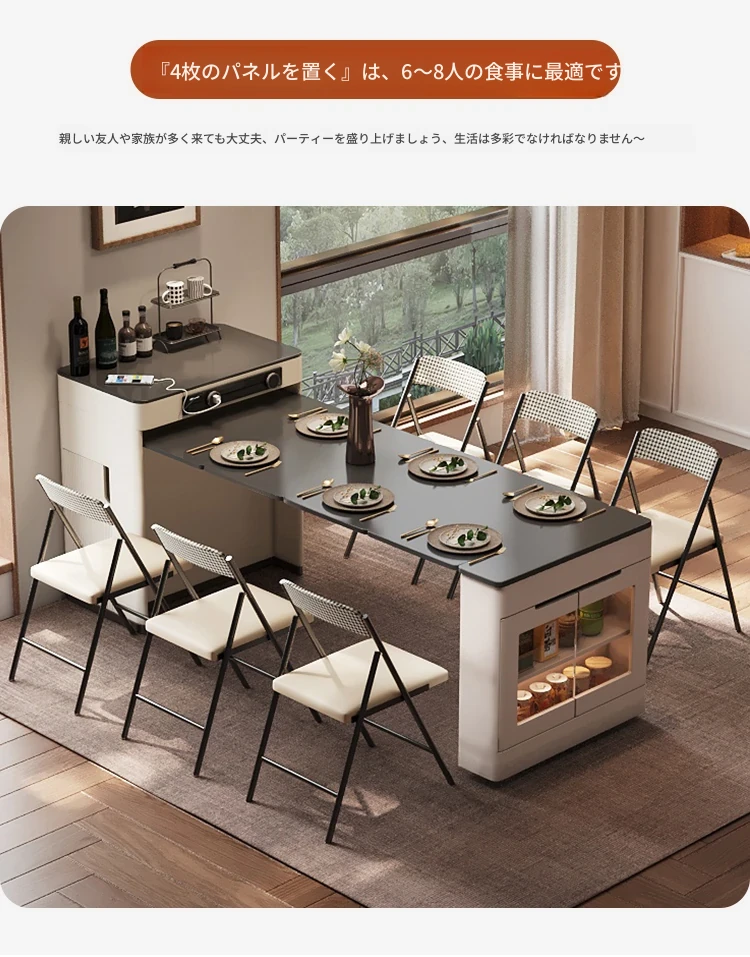 高級フラッグシップモデル伸縮アイランドテーブル+ A型チェア*4(お茶用)