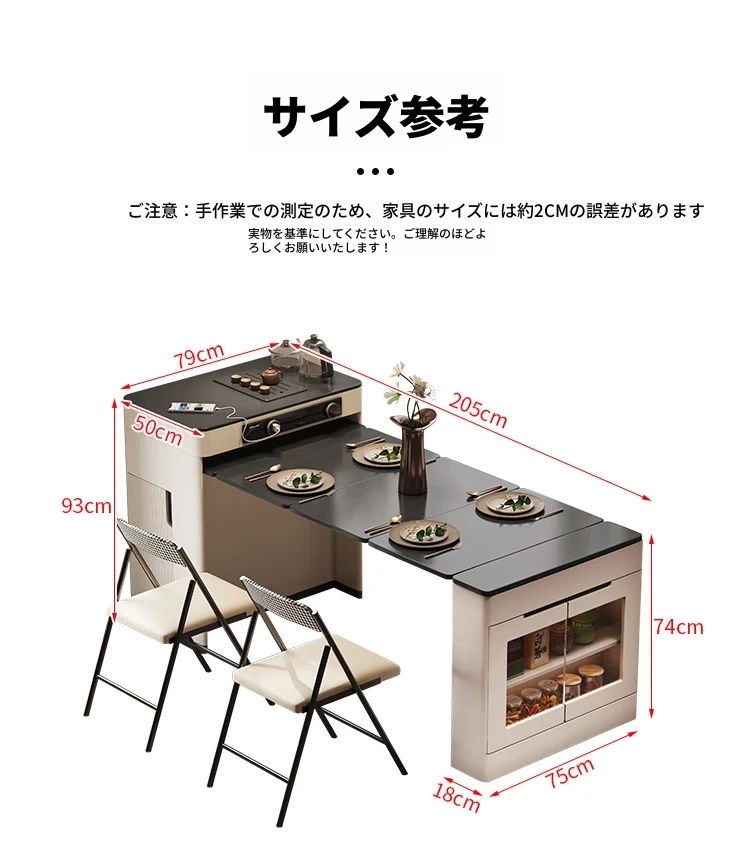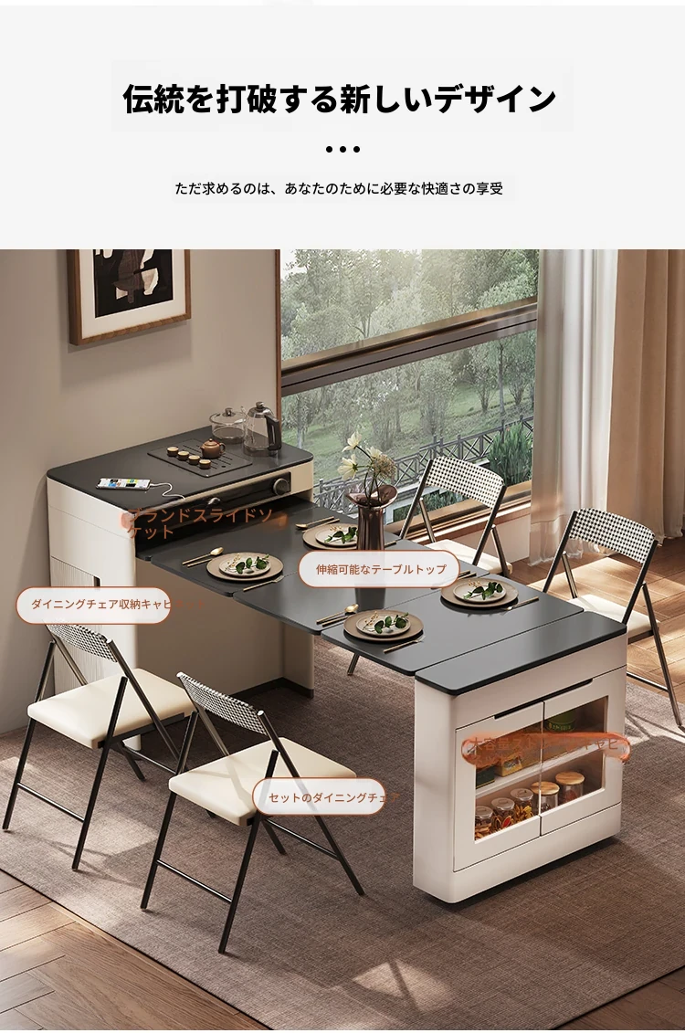 高級フラッグシップモデル伸縮アイランドテーブル+ A型チェア*2(お茶用)