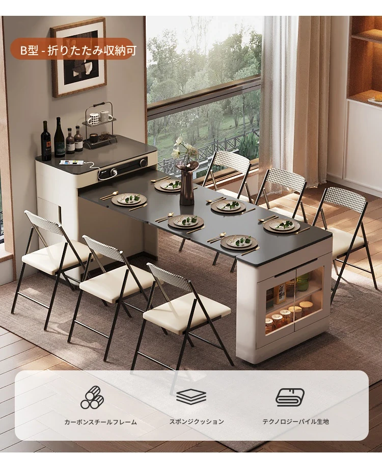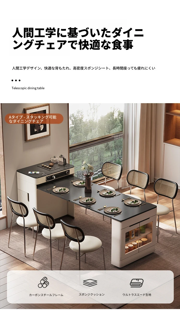 高級フラッグシップモデル伸縮アイランドテーブル+ A型チェア*2(お茶なし)