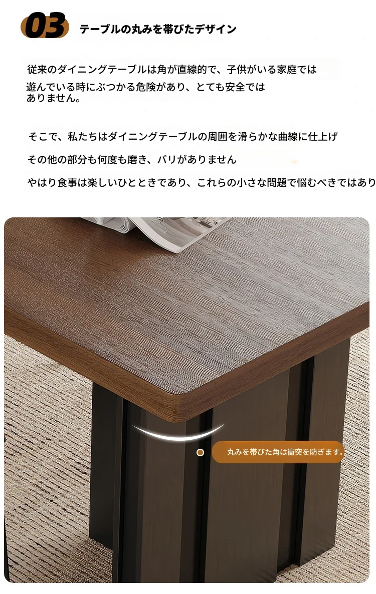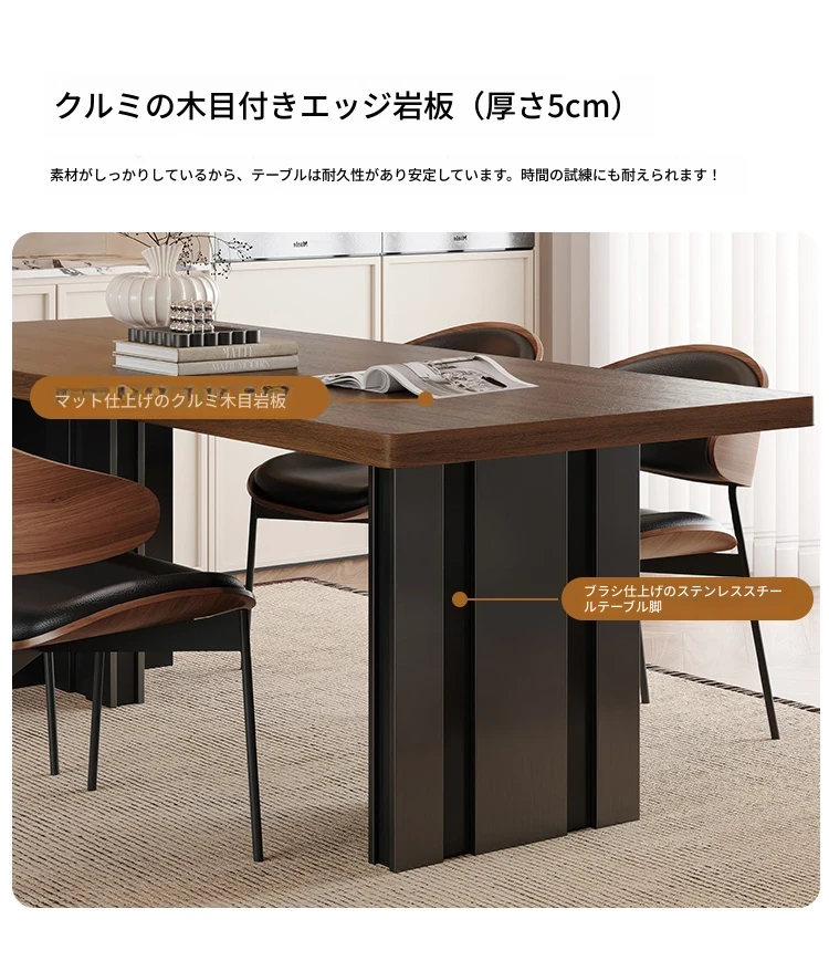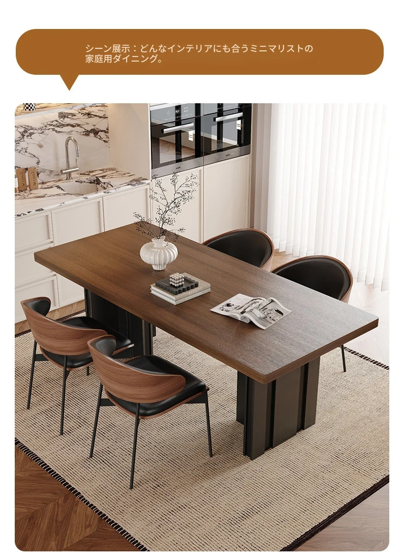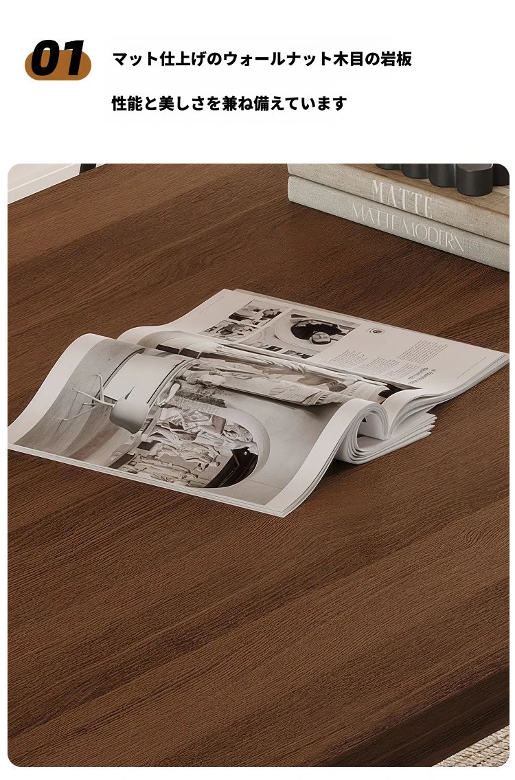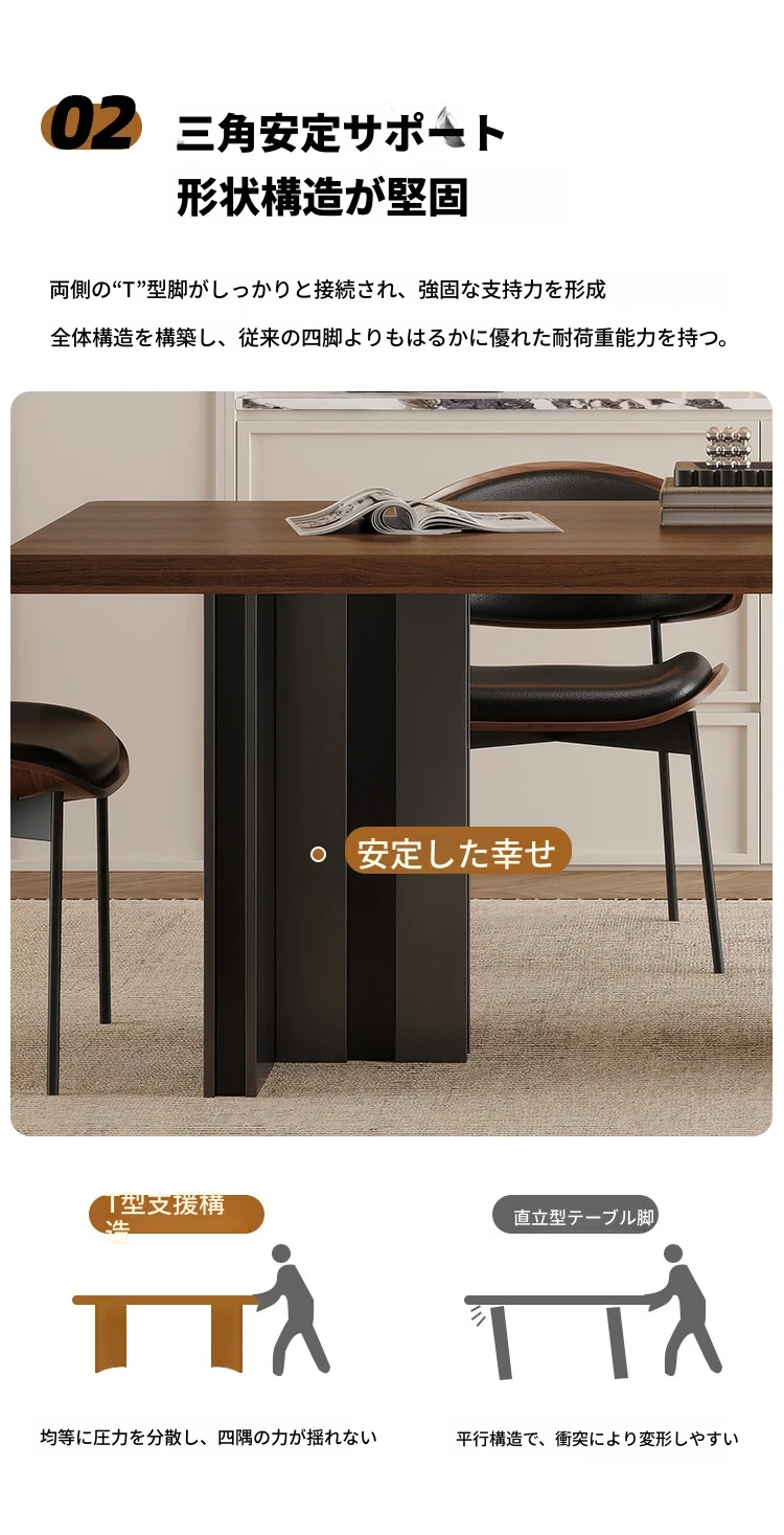 2025年新作!高級感溢れる中古風デザインの木目調イワンテーブル。リビングに最適なスタイリッシュなダイニングテーブルとして、下に収納できるスペースも完備!