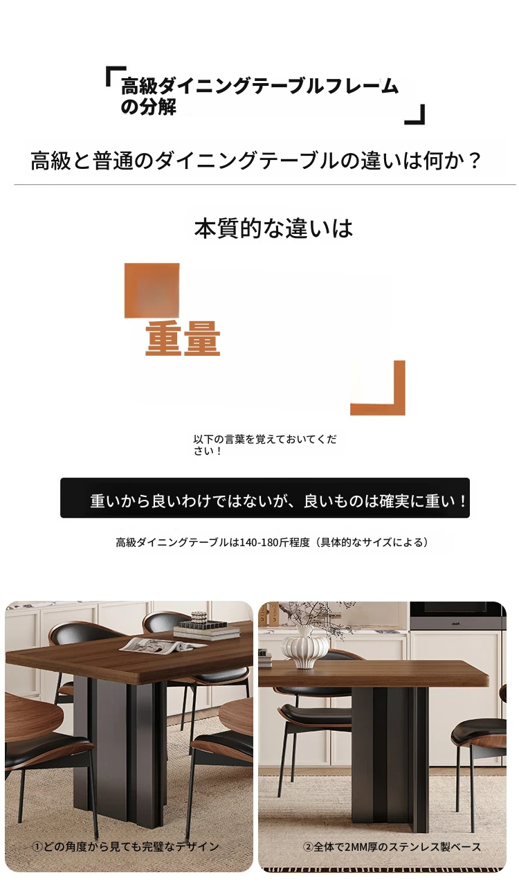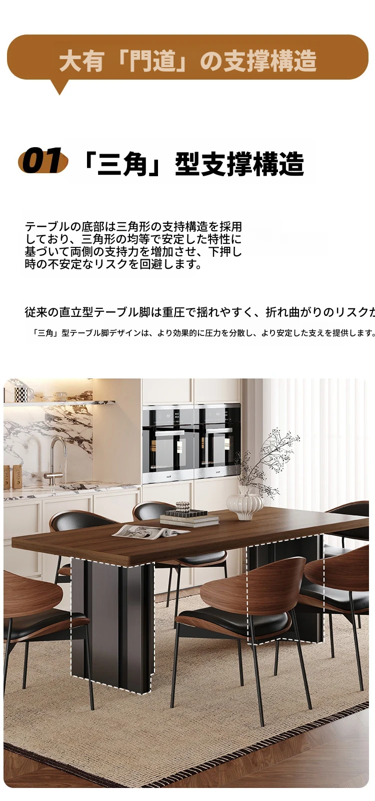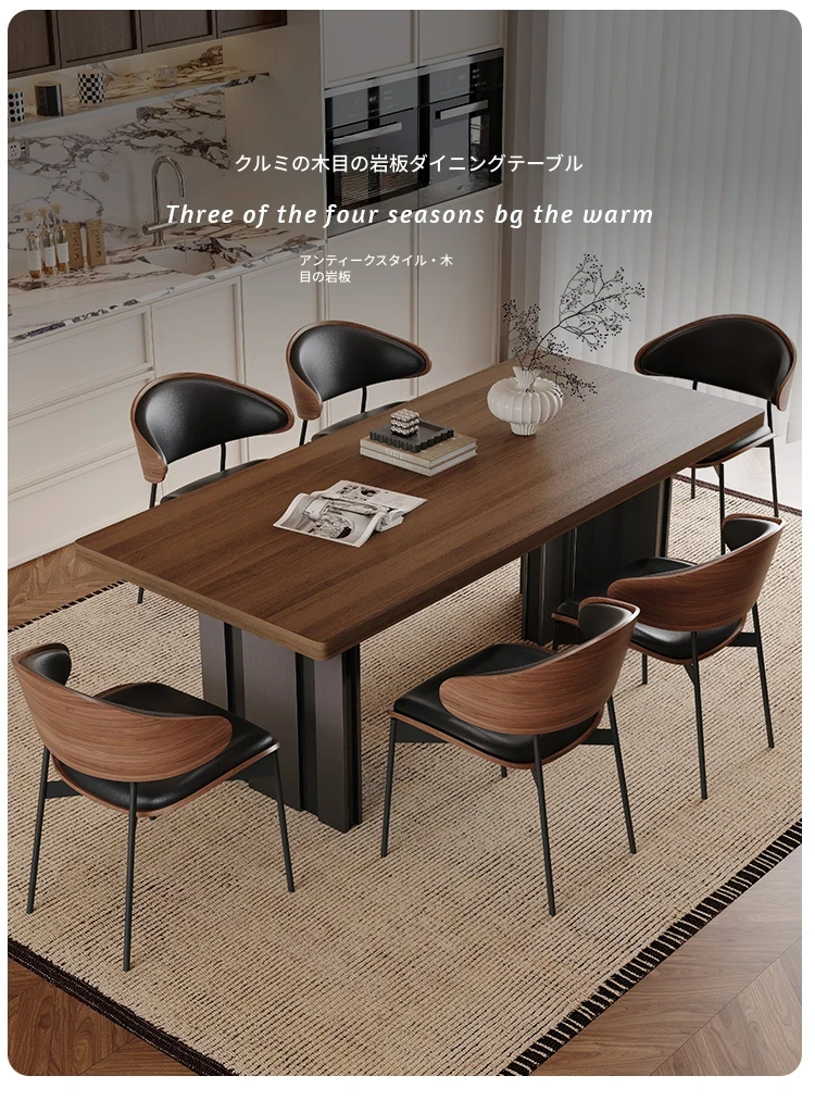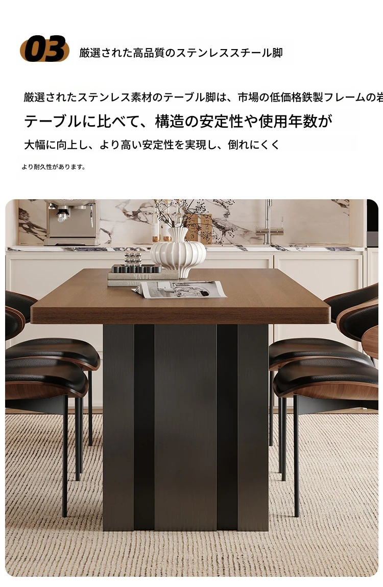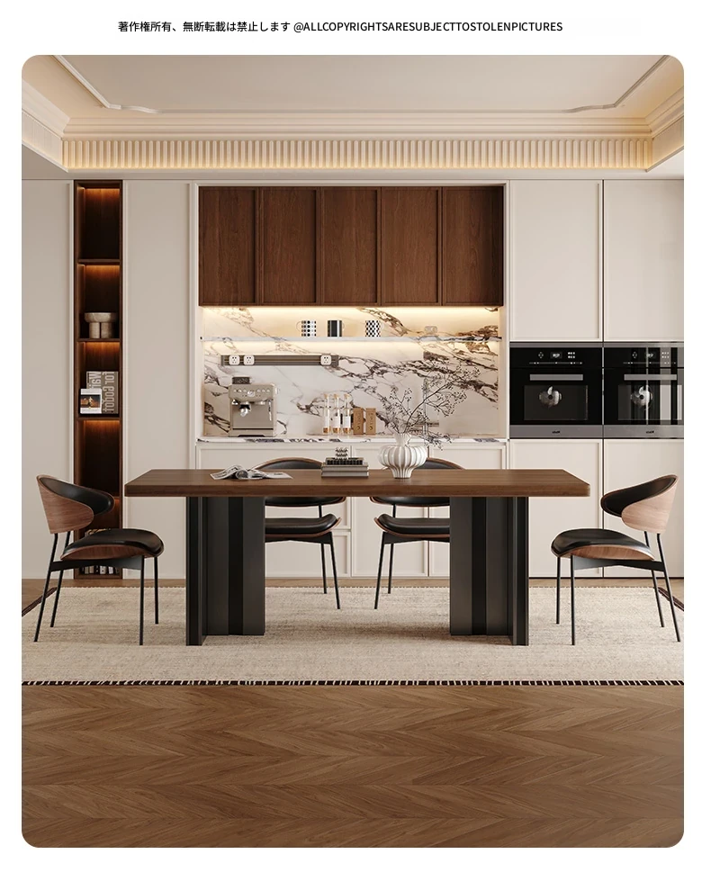 2025年新作!高級感溢れる中古風デザインの木目調イワンテーブル。リビングに最適なスタイリッシュなダイニングテーブルとして、下に収納できるスペースも完備!