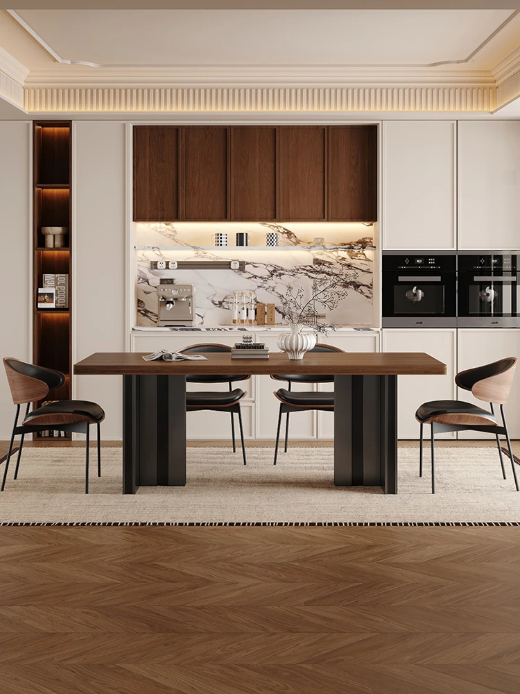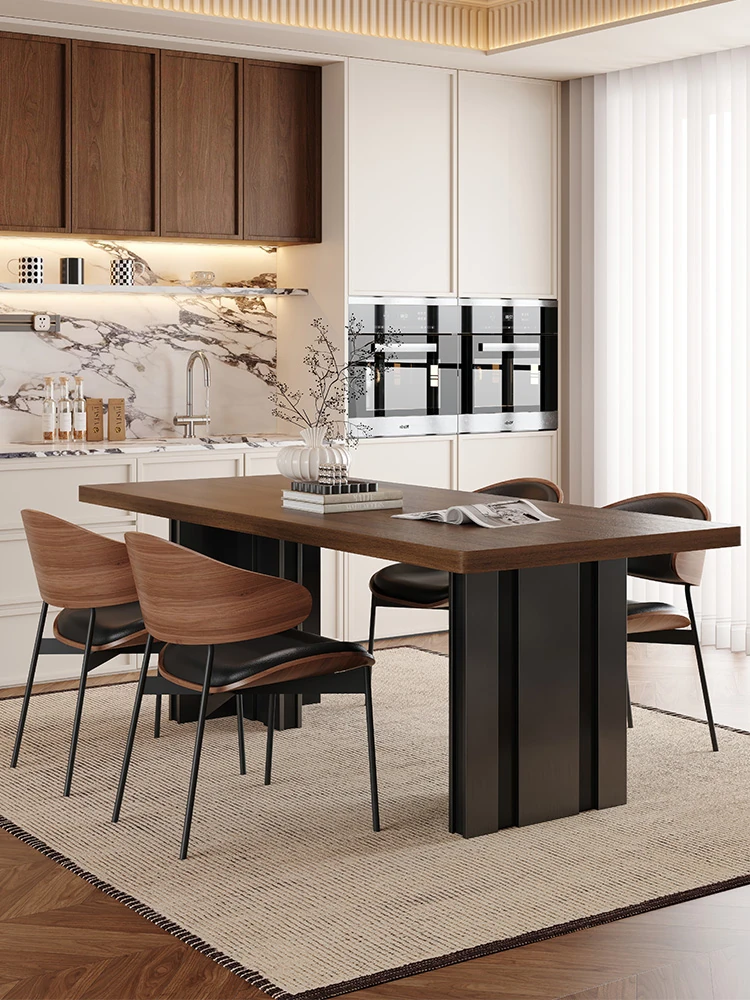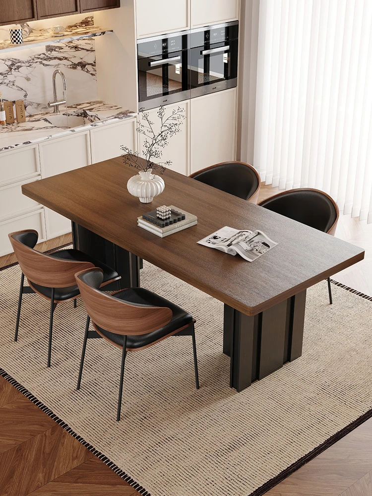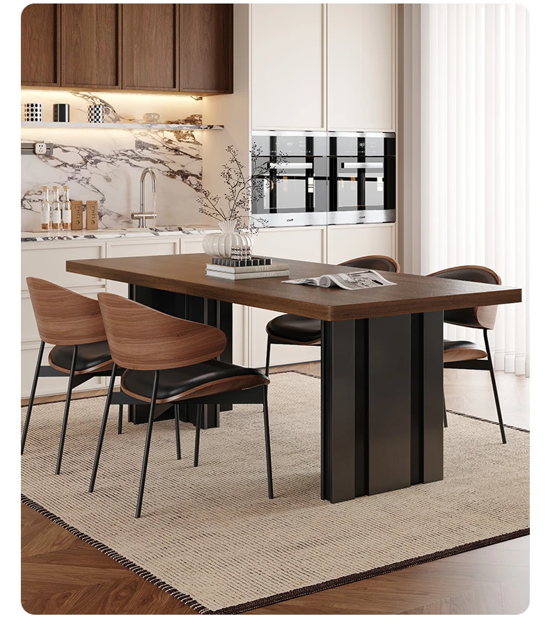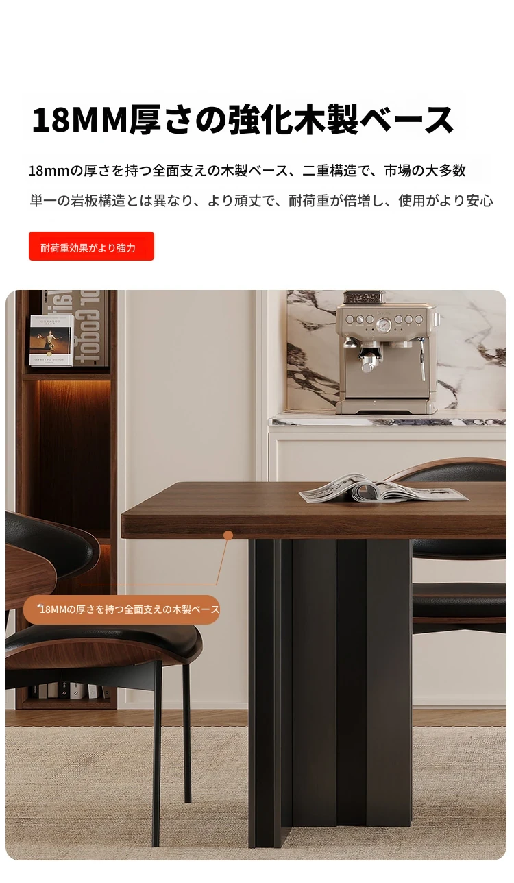 2025年新作!高級感溢れる中古風デザインの木目調イワンテーブル。リビングに最適なスタイリッシュなダイニングテーブルとして、下に収納できるスペースも完備!