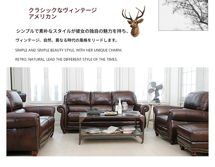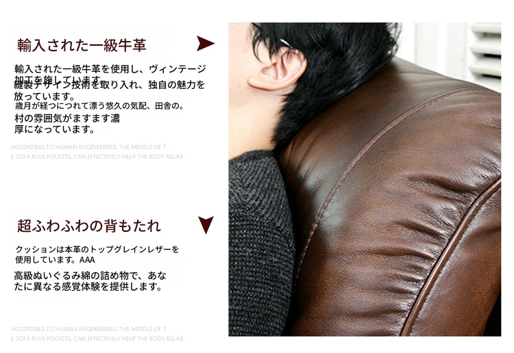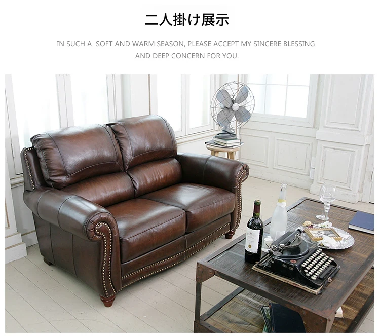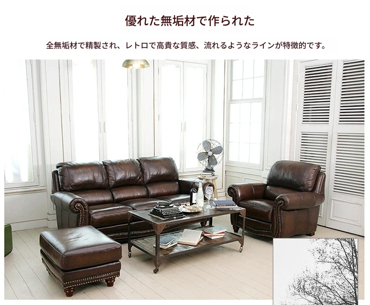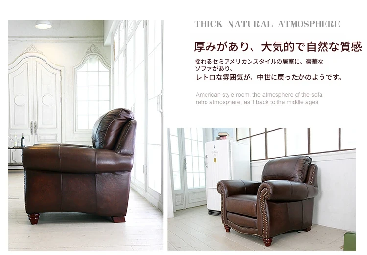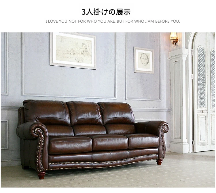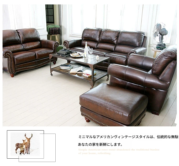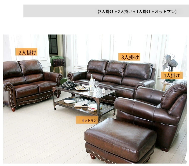 アメリカンヴィンテージ 本革ソファー 1層牛革使用 ブラウン色 3人掛け コンパクトサイズ 小さなリビングにぴったりなカントリースタイル家具
