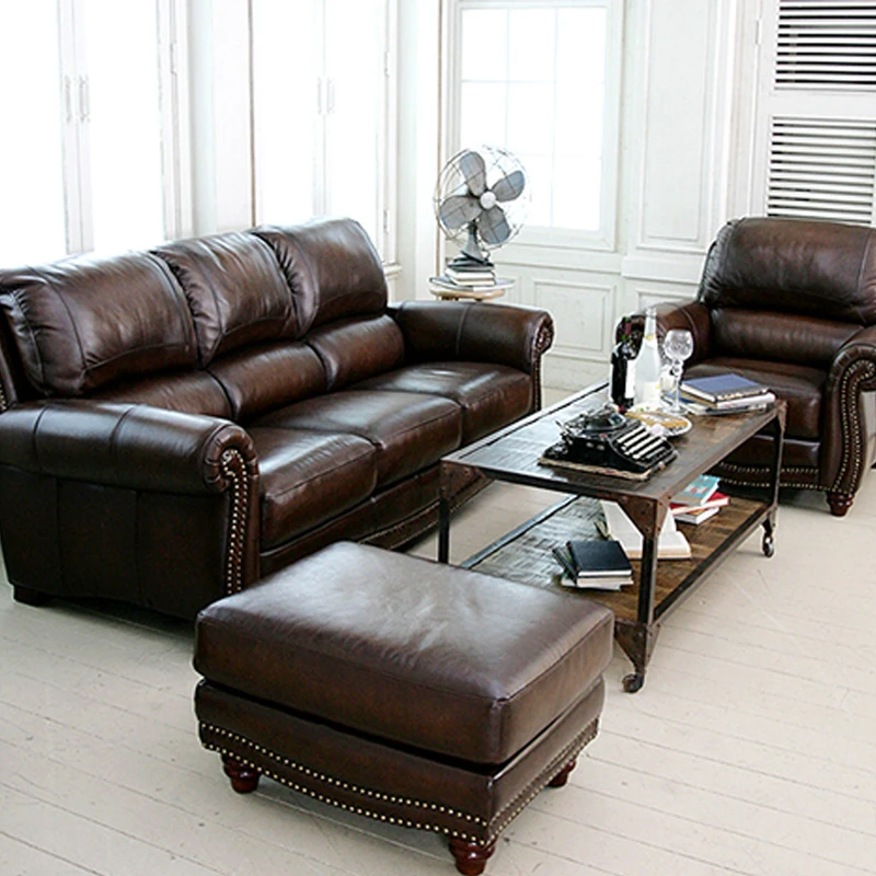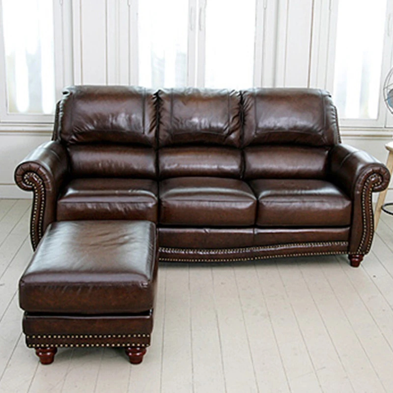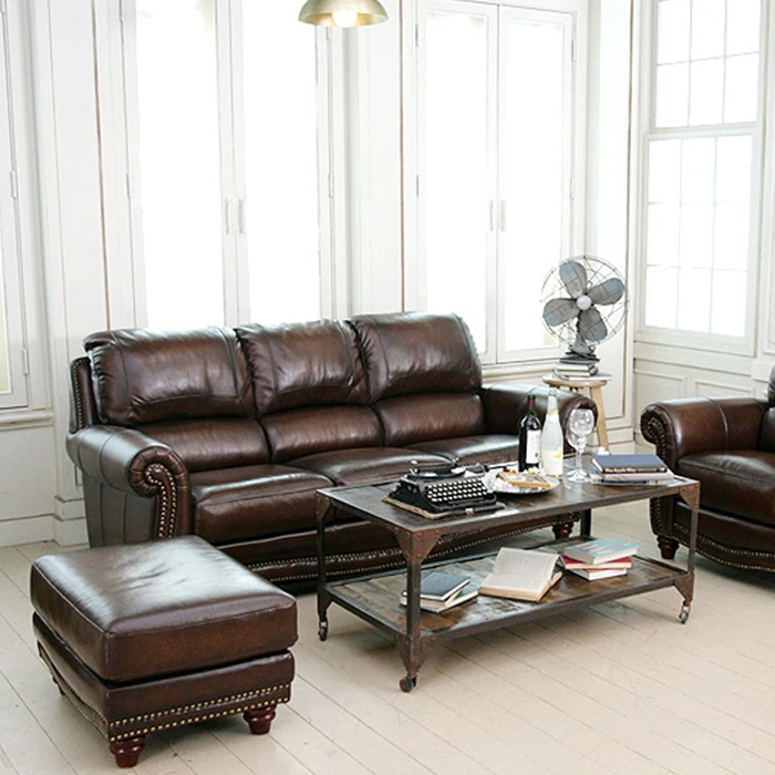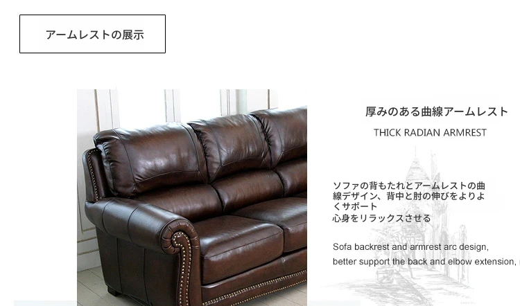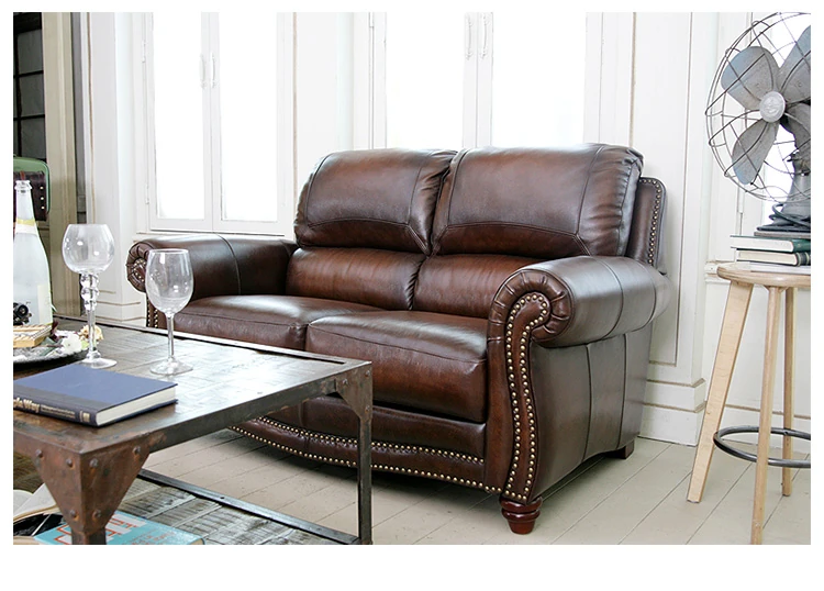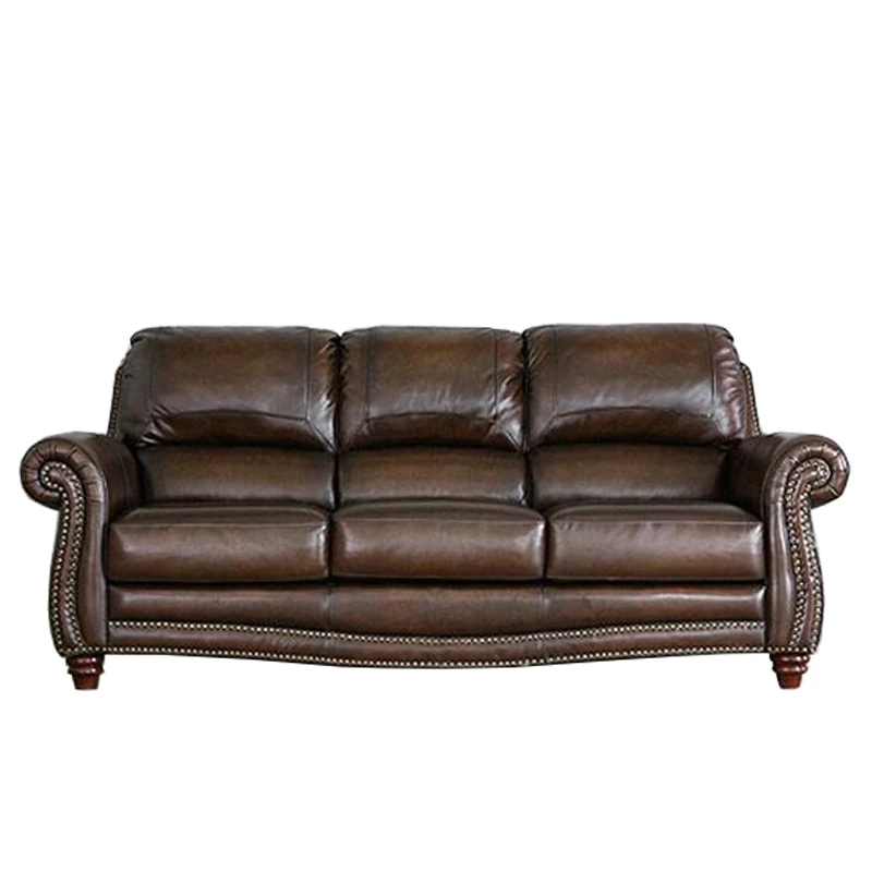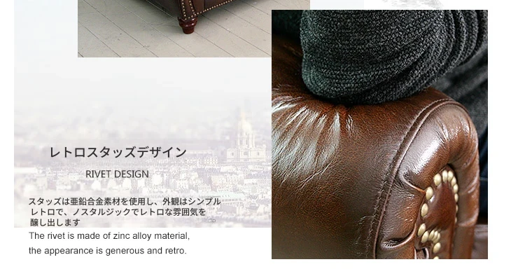 アメリカンヴィンテージ 本革ソファー 1層牛革使用 ブラウン色 3人掛け コンパクトサイズ 小さなリビングにぴったりなカントリースタイル家具