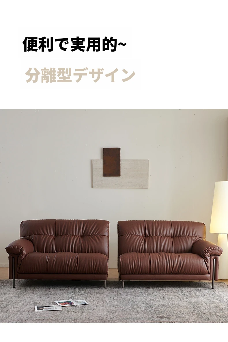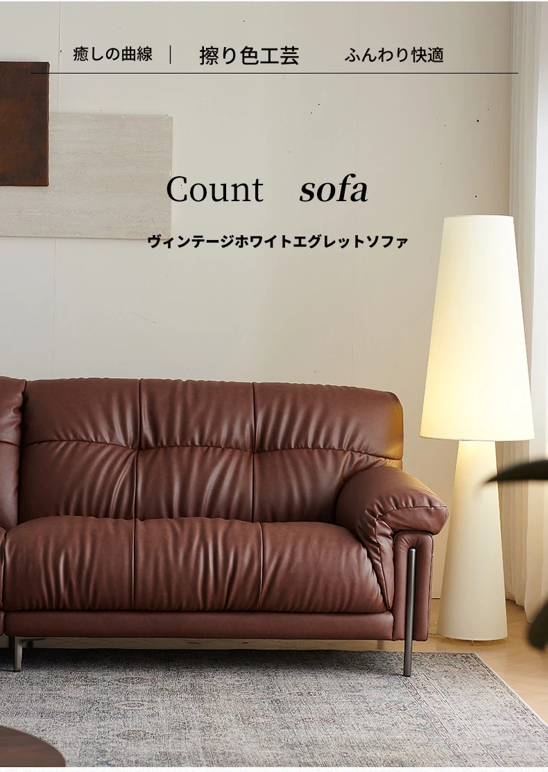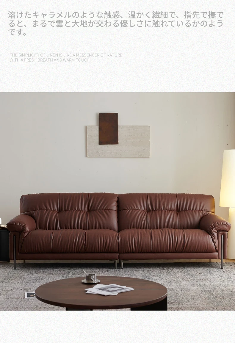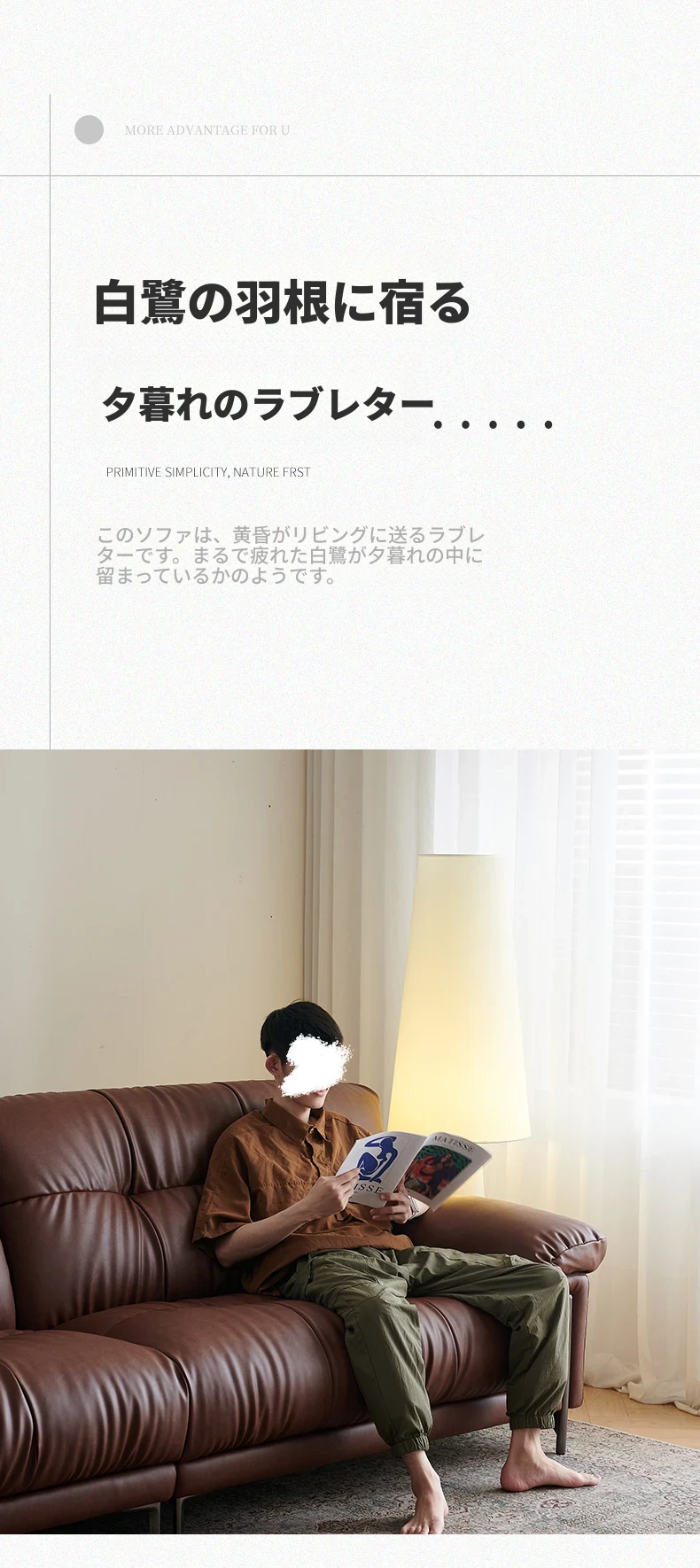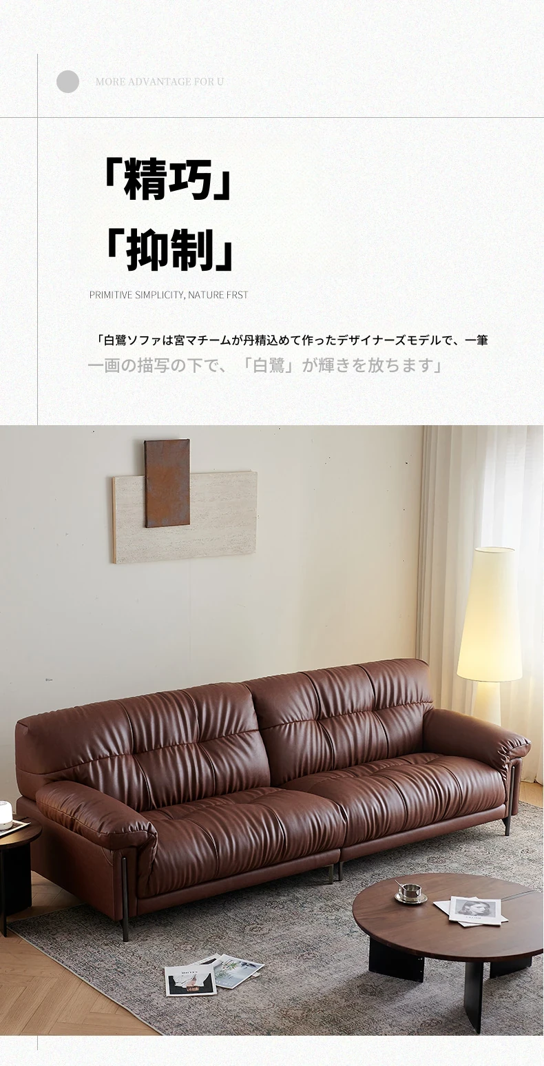 宮瑪/ホワイトエグレット本革ソファ フランス風レトロバウハウスデザイン 小型リビングに最適なストレートソファ - スタイリッシュで機能的、優雅な空間を演出します!