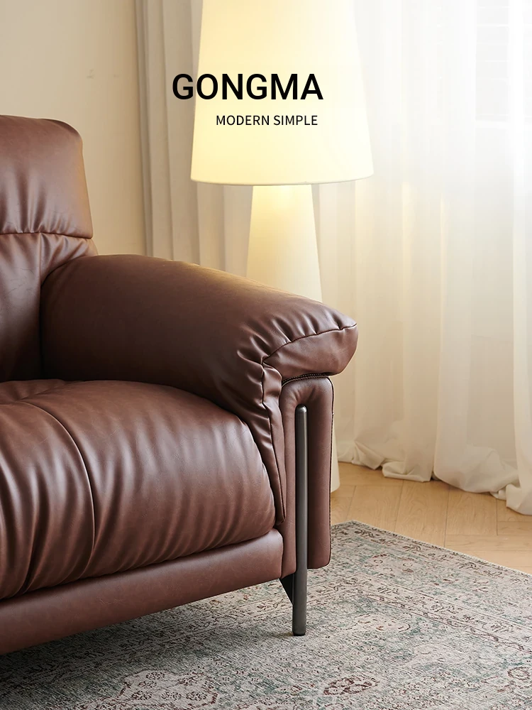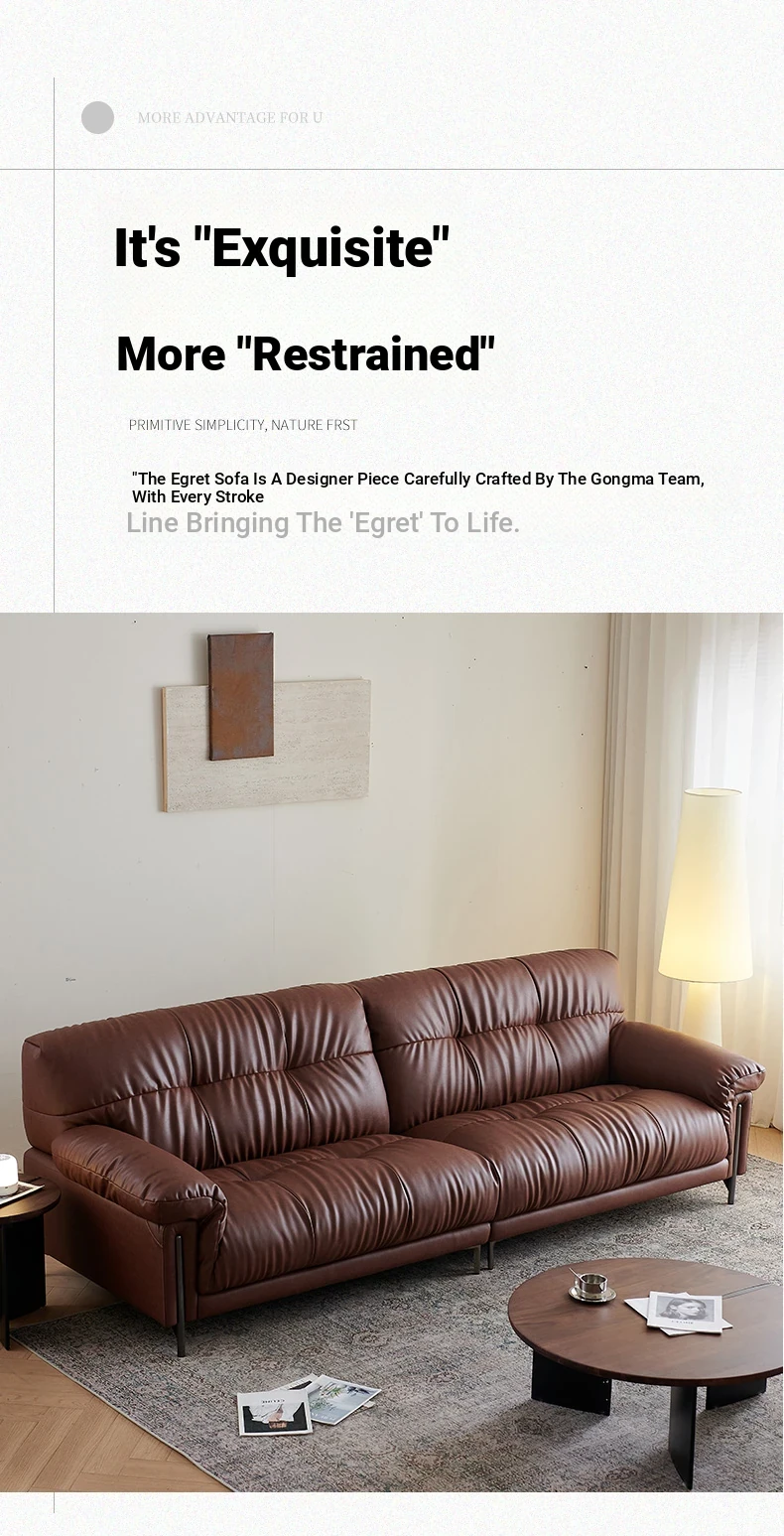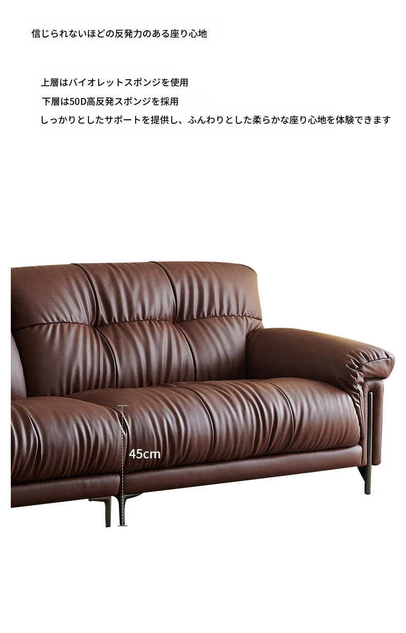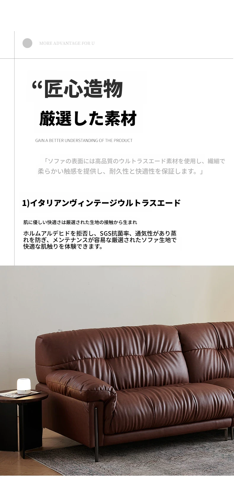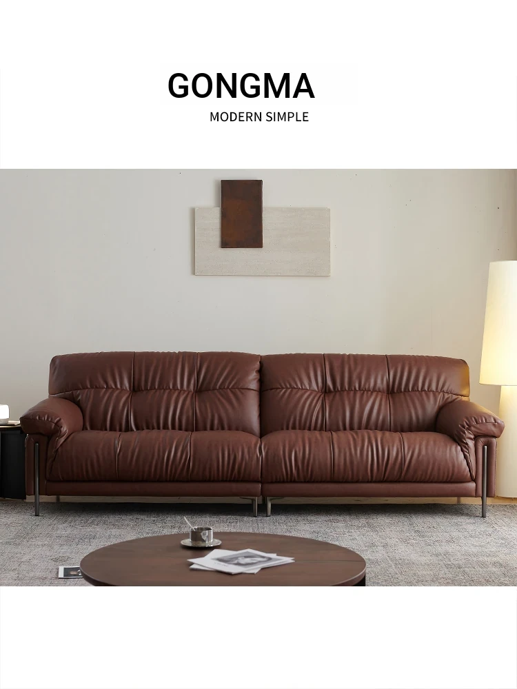 宮瑪/ホワイトエグレット本革ソファ フランス風レトロバウハウスデザイン 小型リビングに最適なストレートソファ - スタイリッシュで機能的、優雅な空間を演出します!