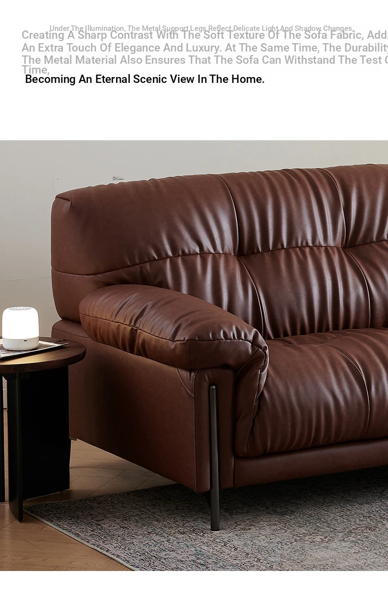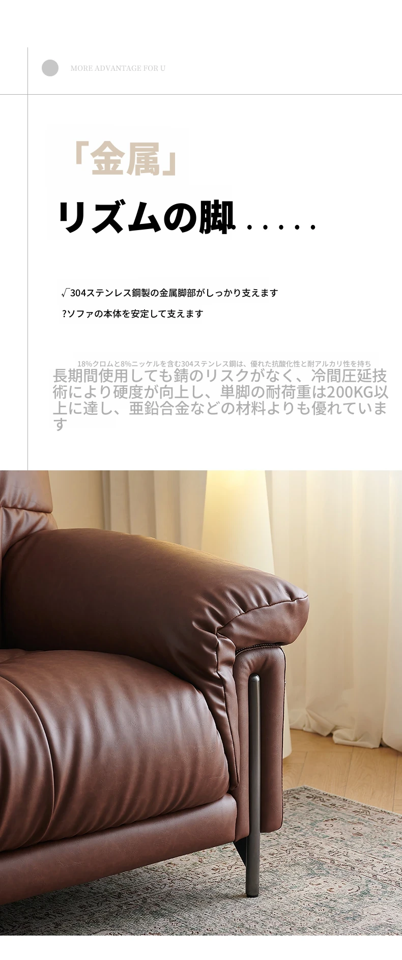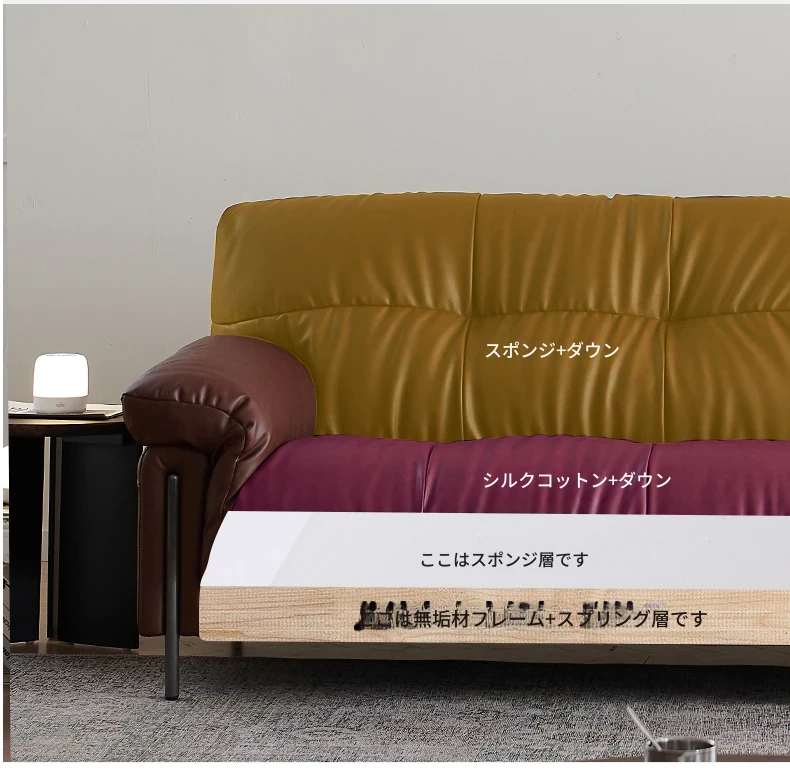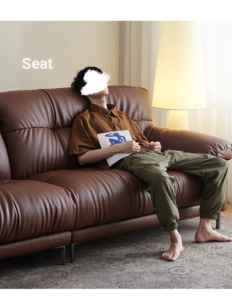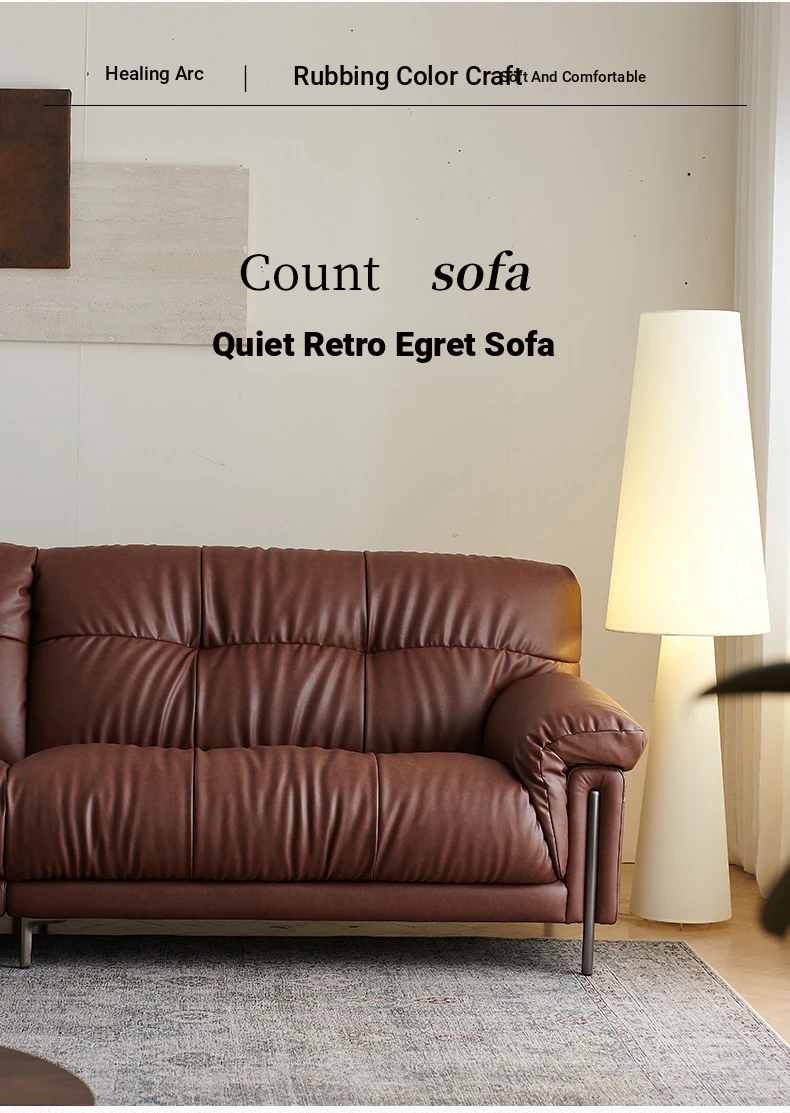宮瑪/ホワイトエグレット本革ソファ フランス風レトロバウハウスデザイン 小型リビングに最適なストレートソファ - スタイリッシュで機能的、優雅な空間を演出します!